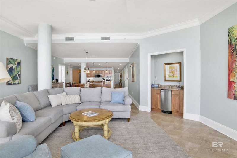 BREATHTAKING 7TH FLOOR RESIDENCE WITH AWE-INSPIRING ISLAND VIEWS! WELCOME TO SEA WATCH, WHERE OWNERS AND GUESTS EXPERIENCE ONE OF PERDIDO KEY'S MOST SECLUDED AND UNCROWDED BEACHES. EACH RESIDENCE FEATURES PRIVATE ELEVATOR ENTRY WITH A CONVENIENT SHOWER TO RINSE OFF SAND, TWO ASSIGNED PARKING SPACES (ONE COVERED AND ONE UNCOVERED), AND A MINIMUM ONE-YEAR RENTAL POLICY FOR ADDED PRIVACY. This impressive 2,741 sq. ft. 4-bedroom/4.5-bathroom layout is among the finest on the island, featuring a Gulf-front Primary Suite and separate hallways leading to each guest bedroom, with 3 of the 4 bedrooms having access to balconies, ensuring everyone enjoys amazing water views. The open-concept living/dining area boasts stunning gulf views with floor-to-ceiling windows, complete with wet bar and NEW ice maker for entertaining. Storage is abundant in this beach home, with a laundry room, walk-in closets in every bedroom and additional hallway storage, including a large closet to hold an extra refrigerator and plenty of shelving. The spacious primary bathroom offers a soaking tub, separate shower, and ample storage, including added linen cabinetry. Sea Watch owners enjoy wonderful amenities including a Gulf-front outdoor pool (heated seasonally) with large covered area to get out of the sun, fitness center, billiards room and one of the most uncrowded beaches on the island! THIS IS THE LUXURY BEACH HOME YOU HAVE BEEN DREAMING OF! Buyer to verify all information during due diligence.