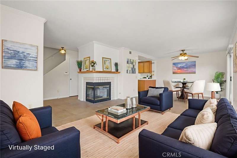 Rare complex corner unit! Welcome to a beautifully maintained townhome tucked away in a peaceful Newhall community. This corner unit sits in a prime rear location, offering added privacy, elevated neighborhood views, and a tranquil atmosphere Inside enjoy an open floor plan designed for comfort and easy living. The spacious living room features elegant tile flooring, crown molding, and a cozy two-sided fireplace, perfect for relaxing evenings or entertaining guests. The dining area includes a ceiling fan and flows naturally into the kitchen, which offers plenty of counter and cabinet space, a walk-in pantry, tile flooring, and a full set of appliances including a stove, microwave, and dishwasher. Upstairs, the primary bedroom stands out with vaulted ceilings, generous space, and a private full bath. Two additional bedrooms and a hall bath provide flexibility for work, rest, or guests. You’ll also appreciate the convenient upstairs laundry closet with built-in storage. Enjoy thoughtful touches like linen cabinets, a downstairs powder room, and a two-car garage. The home’s corner placement enhances natural light and creates a wonderful sense of openness. This residence is ideally located near freeway access, shopping, and dining, making everyday living both easy and convenient. Whether relaxing by the fireplace, hosting friends, or taking in the view from your windows, this home offers the space and features you’ll love to come home to.