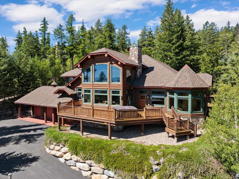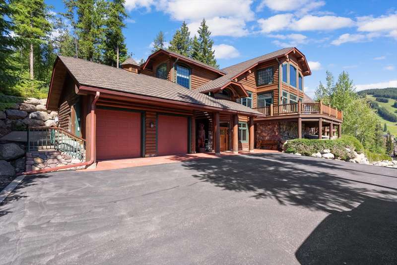 Ski-In/Ski-Out Solace on Sunrise Ridge! Mountain charm and elegance come together in this exceptional alpine retreat at Whitefish Mountain Resort. Perched on the hill with access to the Home Again Ski Trail, this one-of-a-kind 5-bedroom, 6-bathroom, 5,300+/- SF custom log home offers true ski-in/ski-out access, privacy, and panoramic views of Glacier National Park, the Whitefish Range, and the ski slope, all framed by breathtaking sunrises. Designed by local architect Ken Williams and brought to life by local builder Bill Hart, this residence meshes rustic sophistication with everyday livability in the sought-after Sunrise Ridge community. The generous floor plan is thoughtfully laid out for both entertaining & relaxation. The primary suite is a true escape, complete with a private sitting area, two full bathrooms, one with a spa-inspired steam shower. A separate guest suite features its own entrance, sitting area, full bathroom, and kitchenette, giving privacy & flexibility, ideal for family and visitors. Custom amenities raise the bar! A two-person elevator offers convenient access to all three levels, while the outdoor patio, with a built-in BBQ, is perfect for year-round gathering. Soak in the hot tub apres ski while taking in panoramic mountain views or start your mornings with beautiful sunrises and a low maintenance yard filled with sunlight. An oversized, heated attached garage includes a dedicated shop space, adding practicality to the home's impressive list of features. From its handcrafted details to its unbeatable location, this property is the epitome of peaceful alpine living.