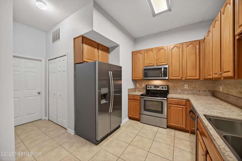 SPECIAL OFFER! Seller WILL PAY THE FIRST 6 months of monthly CONDO FEES with acceptable offer! Don't miss this wonderful ground-floor condo with an ATTACHED GARAGE in Mandarin. OSPREY BRANCH is a small GATED community with pool & gym. The floorplan offers a 3 bedrooms & 2 baths. New LVP flooring and neutral tones throughout. The 3rd bedroom offers a HUGE closet and great flexibility as an Office, Bedroom or Dining area! The kitchen shines with stainless appliances, a deep double-bowl sink, full tile backsplash, warm wood cabinetry, and a huge pantry. Unwind in the private screened patio with no rear neighbors! The primary suite includes a walk-in closet and ensuite bath with glass-door walk-in shower. The 2nd Bedroom is split and offers great privacy. Separate laundry area with washer & dryer included. Monthly fees cover cable, internet, and exterior maintenance. The community & buildings are well maintained with a new roof in 2024! You'll be close to shopping, dining and entertainment. FHA & VA approved with very reasonable monthly fees. Guest Parking and cul de sac street.