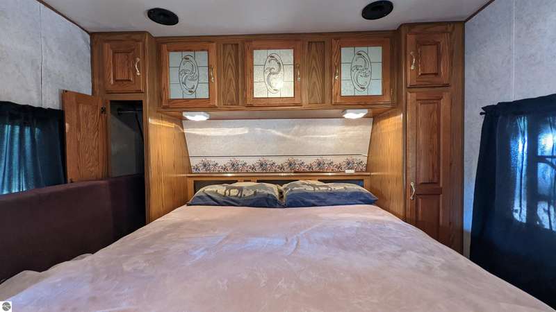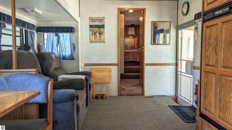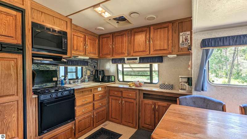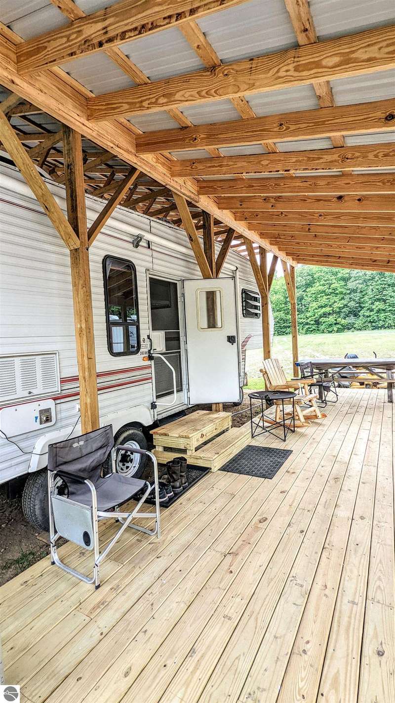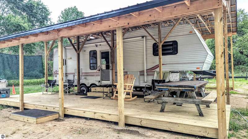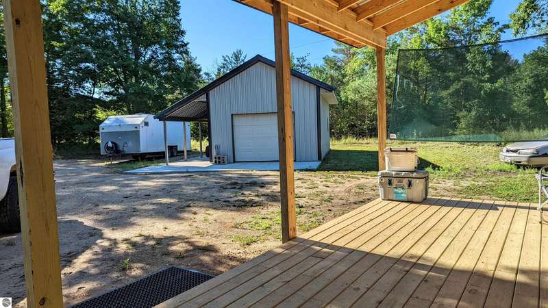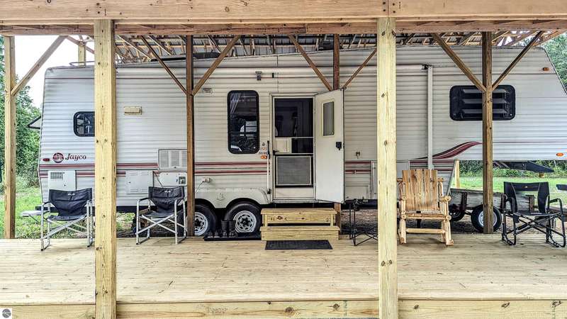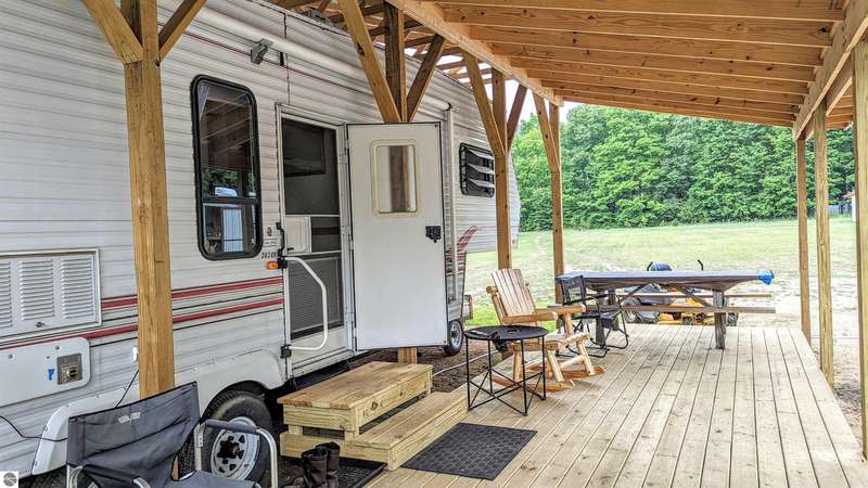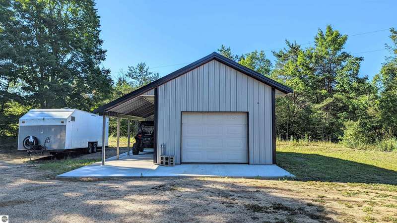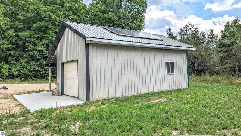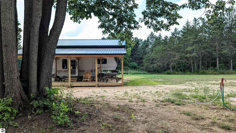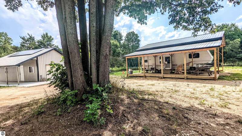 This beautifully wooded parcel has the potential to be your dream getaway. With solar and battery backup, a new well and septic all installed for full or part time living. The large level yard is spacious with a dense section of woods in the back of the property. There is a 32' camper equipped with a roof and attached porch for you to spend your summers or to live in while building your dream home. The 16x28 garage is great for storing toys or converting to living quarters. The property is right off the main road for easy commuting. Trees line the perimeter to give you just enough privacy while allowing for easy travel. This property is centrally located offering all the best amenities. With Frankfort, Traverse City, Manistee and Cadillac all within 30 miles reach there is always something to explore. Buyer to verify all measurements and information.