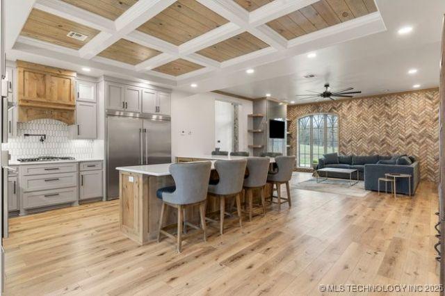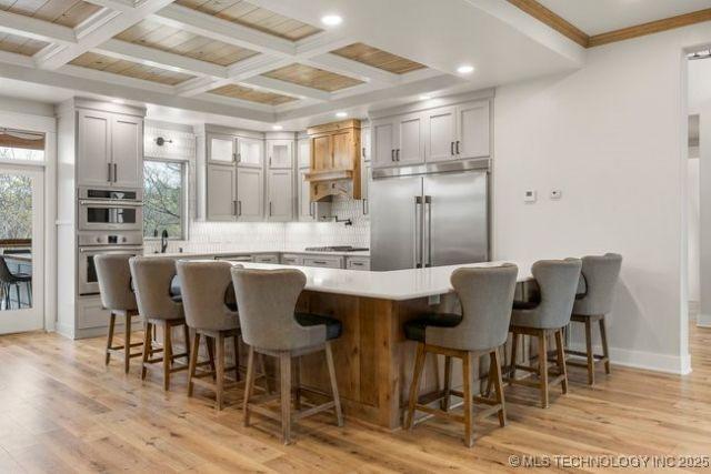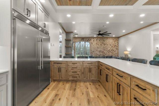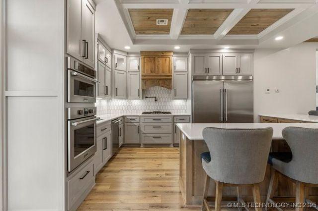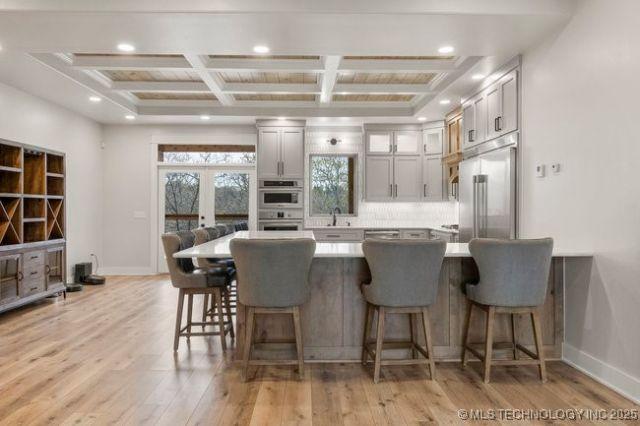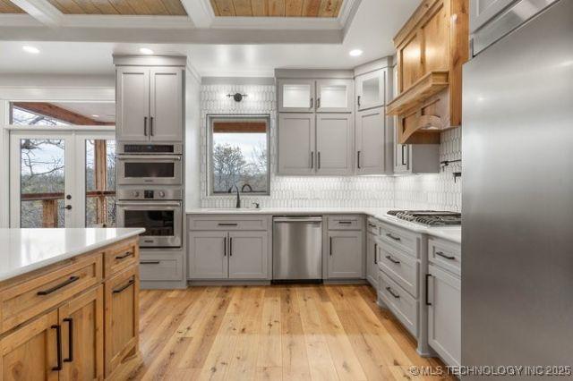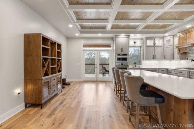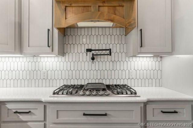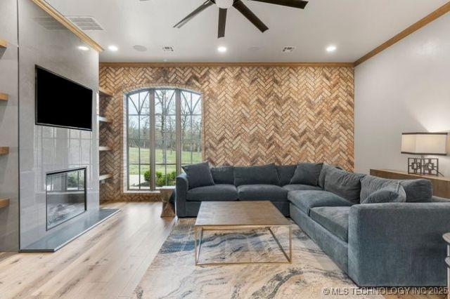 Envision a luxurious home that seamlessly integrates comfort and elegance, with cathedral ceilings and beautiful windows that create a bright and airy atmosphere. The home features gorgeous wood floors throughout. A striking brick wall in the living area, entryway and master bedroom creates a lasting impression. The kitchen is appointed with custom built-in cabinets, soft-close drawers and professional-grade appliances. A spacious quartz island provides the perfect setting for food preparation while socializing with guests. An adjacent outside bar area offers additional opportunities for entertainment. The expansive master bedroom boasts a cozy fireplace. The master bathroom is a serene retreat, complete with a large walk-in closet and a built in safe. It isn't until you walk downstairs that you see all the square feet this home truly has. Downstairs features additional living space, four bedrooms and two bathrooms. A kitchenette, safe room, and utility room with a dog wash/grooming station are also included. There are two laundry rooms, one upstairs and one downstairs with plenty of storage and space. The residence features instant hot water system, built in de-humidifier, electronic air filters, surround sound and security cameras. The three-vehicle garage is insulated, as is the attic. Upon stepping outside, you can take pleasure in the 7.1 m/l acres and the fenced, raised garden beds ideal for gardening. This property is conveniently situated between Tulsa and Stillwater. This exceptional residence offers numerous details that warrant a personal viewing.