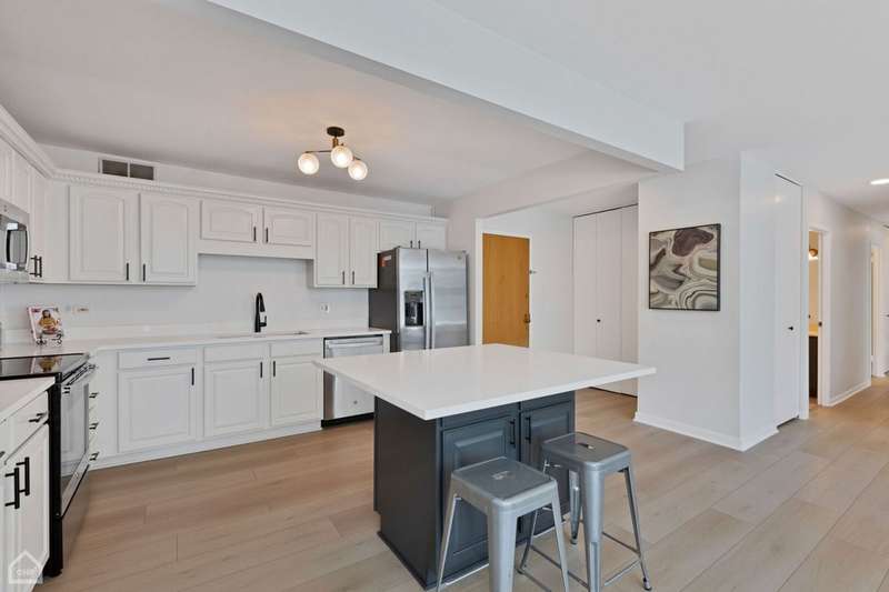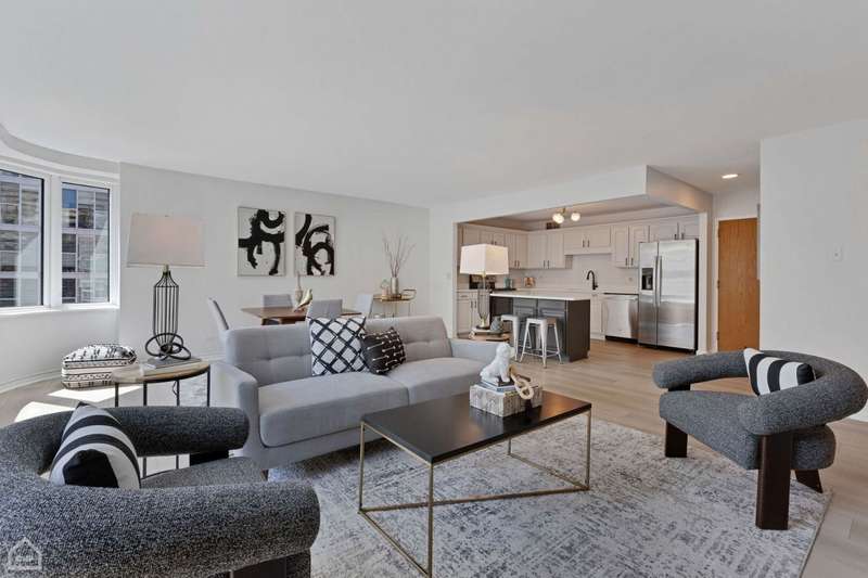 High floor, spacious, south-facing 3 bedroom, 2 bath unit recently redone with parking at the Grand Ohio in Streeterville, available now! Conveniently located between Chicago's Mag Mile & Lake Michigan, this home has been updated & refreshed and is move-in ready! Stylish flooring throughout creates a seamless design in this apartment. The open kitchen features crisp light grey cabinets, stainless-steel appliances & quartz counters, with an island set up for bar stools and seamless entertaining. It opens to your generous great room, where you'll enjoy tons of room for a large sectional plus large dining table, and great wall space for your media center or artwork. King-sized primary suite with dual closets and private, attached bath with updates. Plus, two additional bedrooms share a guest bath (also with recent updates). There is great storage throughout this home, including coat closet, linen closet, additional closet *plus* a walk-in storage closet - no need to purge before you move! Plus, a powder room for your guests! Intelligent layout with lots of light. This full service, elevator building features 24 hour door staff, on-site management, laundry room, dry cleaners, receiving room, dog run, sundeck, hospitality room, bike storage, plus wonderful fitness spaces: exercise room, indoor pool, tennis courts, racquetball & basketball courts, whirlpool and sauna. A+ location 2 blocks to Michigan Avenue or Ohio Street Beach, with grocery (Whole Foods) and Target a few blocks away, plus tons of restaurants, movie theater, close to Navy Pier and Northwestern Medical/Law Campus, Shirley Ryan Ability Lab. Convenient to Chicago River Walk and for hopping on Lake Shore Drive, too! Parking is valet. Come home!