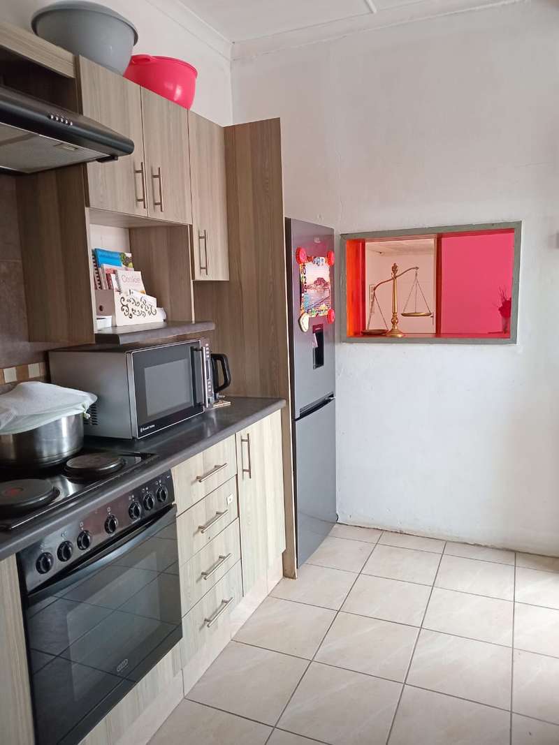 This is a charming 4 - Bedroom House with a Self-contained Flatlet. The home welcomes you with a spacious open plan living area, including a cozy fireplace: perfect for cold winter nights. The kitchen is well equipped with ample cabinets which also include a Stove with eye-level oven. All 3 bedrooms are large and comfortable, with a shared bathroom (bath, shower, basin and toilet). The fully equipped flatlet features a kitchenette and large bedroom with walk in en-suite bathroom. The flatlet is perfect for generating extra income or accommodating extended family. There is an outside and inside braai area, an inviting space ideal for entertaining or family gatherings. The property has double garages and additional parking for 2 vehicles outside. A huge garden space, perfect for kids and pets to play. This home is conveniently located near essential amenities. Schedule your viewing today!!