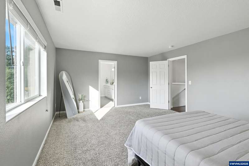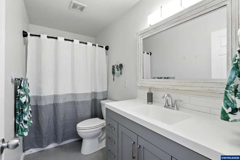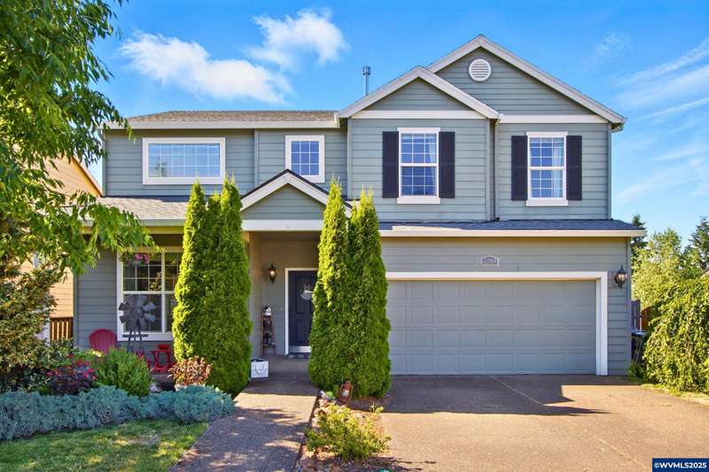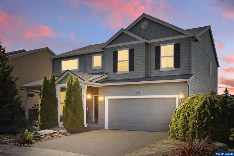 Check out this turnkey, modern home in Nottingham Woods with room for everyone! Features include - new AC, LVP flooring, gas fireplace, gigantic updated deck, fully-fenced back yard, and an oversized bonus bedroom / playroom - all on a private cul-de-sac near Costco, top-rated schools, and Interstate 5. Enjoy an easy commute, or flex WFH flex space, and sweeping views from the primary with en-suite, double vanity, and a large walk-in closet. Don't miss this South Salem gem!