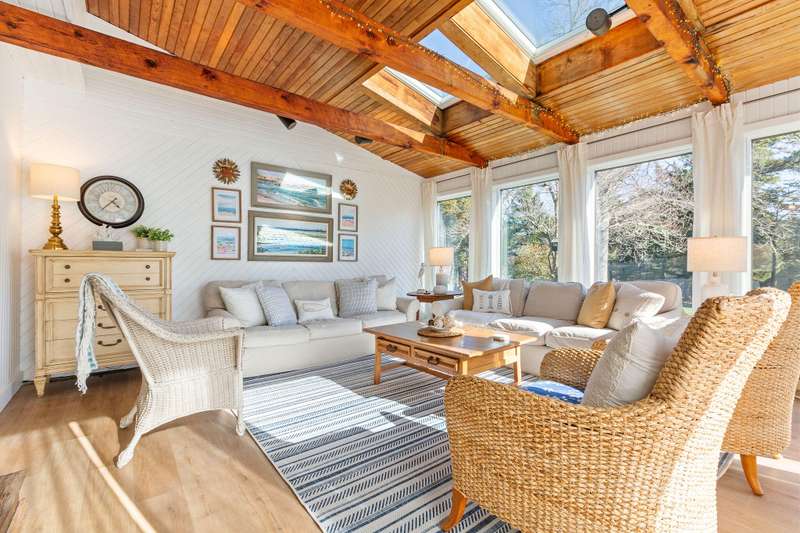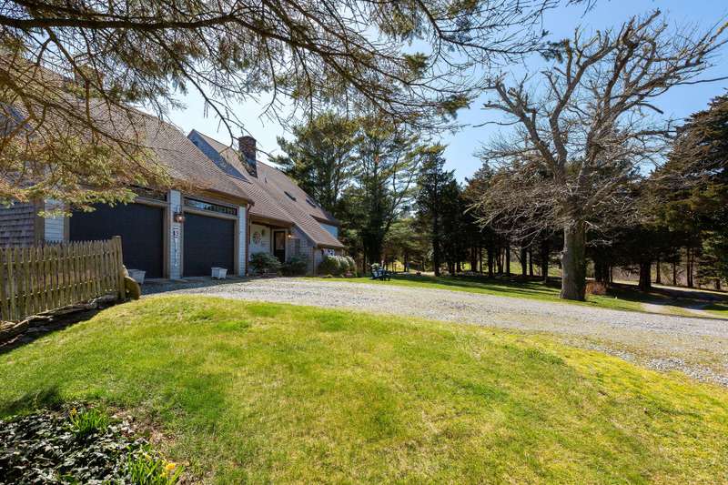 A long, winding driveway leads you to this secluded 4.32 acre sanctuary, where a park-like setting unfolds, highlighted by mature trees, perennial gardens, and scenic pond views. Enjoy unparalleled privacy and bucolic charm at this rare opportunity offered in sought-after East Orleans.Designed for both comfortable living and effortless entertainment, this 3-bedroom, 2.5-bathroom home boasts an open floor plan with spacious rooms. A light-filled sunroom provides the perfect spot for morning coffee or afternoon relaxation, while the office offers flexible space for a home office, gym, or media center.Wildlife abounds in this tranquil setting, where stone walls meander through the landscape, adding to the property's unique character. A partially fenced yard offers a safe haven for pets and play.Car enthusiasts and boat lovers will appreciate the two separate garages, each providing two full bays, offering ample space for vehicles and watercraft.Experience complete privacy and serenity in