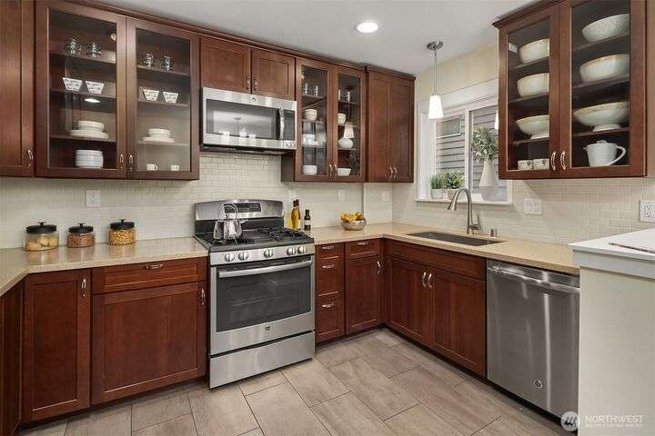 Discover this beautifully remodeled 3-beds, 3-bath home in the heart of Phinney Ridge, where modern comfort seamlessly blends with timeless charm. The new kitchen, with sleek cabinets and granite counter tops and high-end appliances, inspires your culinary passions, while the stylish, upgraded bathrooms add a touch of elegance. A cozy gas fireplace creates an inviting atmosphere perfect for relaxing evenings. Step outside to a low-maintenance garden, along with a spacious deck and patio off the kitchen, ideal for intimate gatherings. The partially fenced yard is perfect for pets and play. Recent updates provide peace of mind, and the vibrant neighborhood offers parks, restaurants, and unique shops just moments away.Your Urban Oasis Awaits!