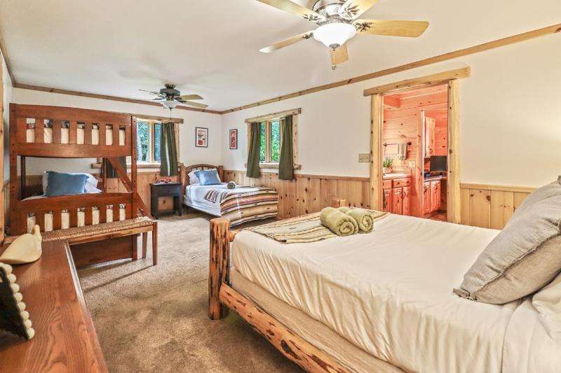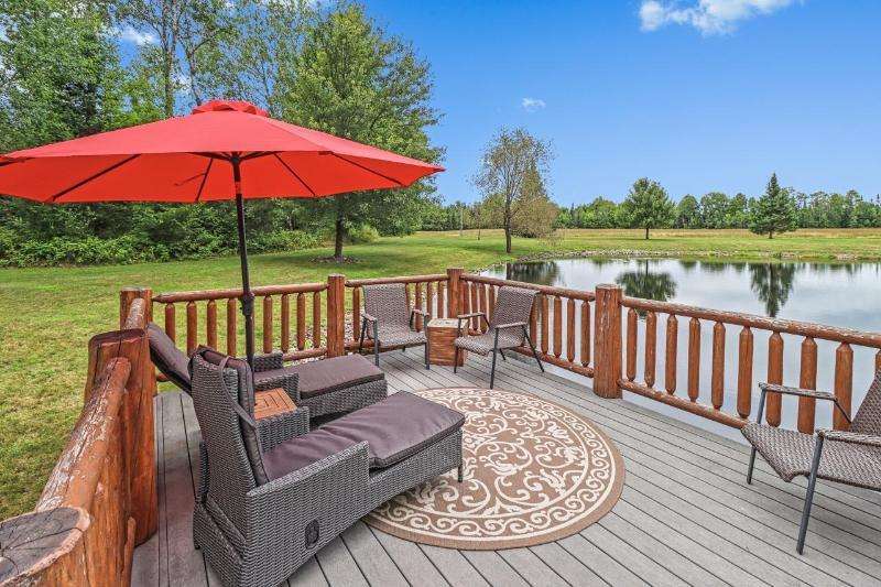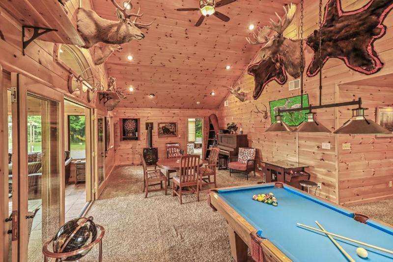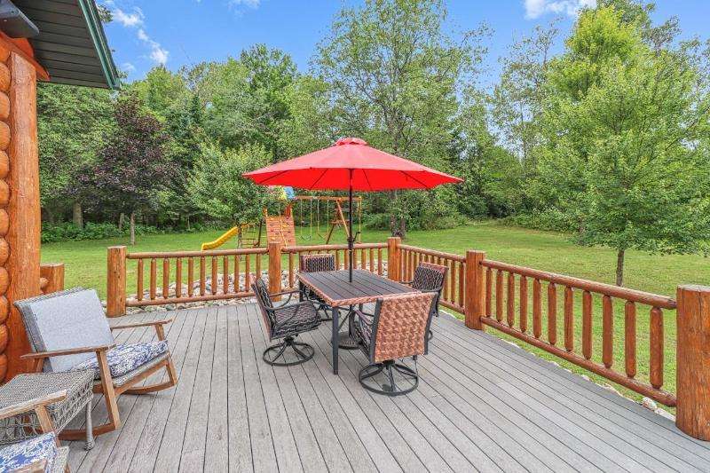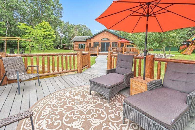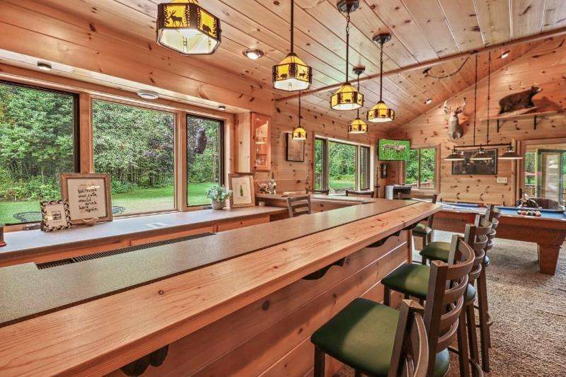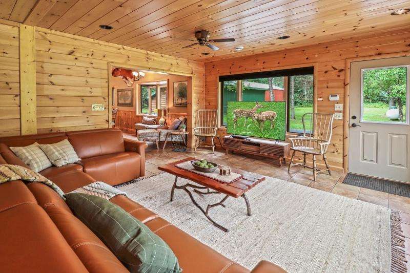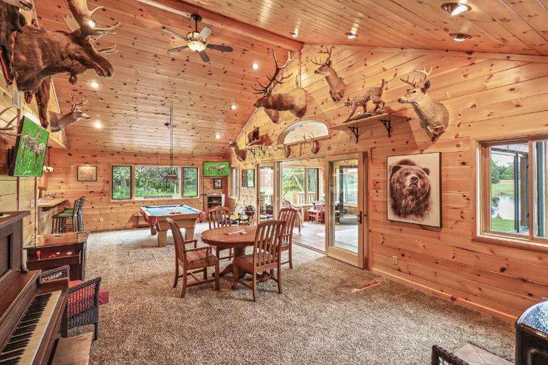 Welcome to an extraordinary Northwoods retreat. Spanning 430 acres with over 5,000 feet of pristine Big Somo River frontage, this estate offers unmatched privacy and natural beauty. The centerpiece is a spectacular 4,390 sq ft full-log lodge, crafted with the finest materials and exquisite attention to detail. Inside, every room reflects warmth, comfort, and timeless quality. Outside, three scenic ponds, miles of private trails, and abundant wildlife create a serene backdrop. Additional amenities include over 3,200 sq ft of garage space (some heated), a versatile game/bunk house, and a custom-designed man cave for entertaining. This is more than a property--it's a legacy estate designed for relaxation, recreation, and refined living.