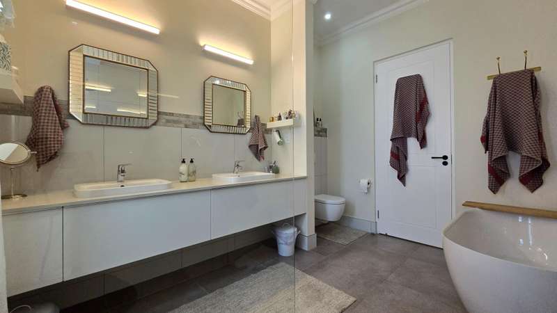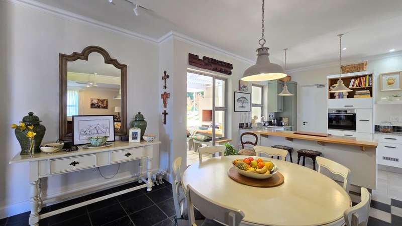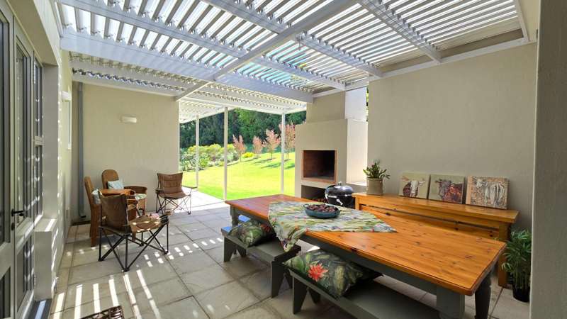 Set within the exclusive Mont Fleur Mountain Estate, this exceptional home blends timeless elegance with the tranquility of mountain living. Designed for those who appreciate space, light, and peace, it offers a seamless balance between modern luxury and everyday comfort. The open-plan living and dining areas flow effortlessly onto a covered patio where majestic mountain views set the tone for relaxed living. A built-in braai and wood-burning fireplace make entertaining inviting year-round, while the beautifully appointed kitchen?Çöcomplete with quality finishes, a scullery, and access to a second outdoor braai area?Çöforms the welcoming heart of the home, ideal for both gatherings and family meals. With an adaptable floor plan featuring three to four bedrooms, an office or guest suite, and a hobby room opening to a private garden, the home is thoughtfully designed for both family life and remote work. The main suite opens directly to the garden, while the guest room offers its own en-suite for added privacy. Practical details, such as a walk-in linen cupboard, separate laundry, and service yard, enhance convenience, while energy-efficient features?Çöincluding 15 solar panels, an inverter, and dual 5kW batteries?Çöminimize running costs. Beyond the home itself, Mont Fleur offers a lifestyle of peace and community, with scenic walking trails, serene parks, and a secure environment surrounded by nature?ÇÖs beauty.