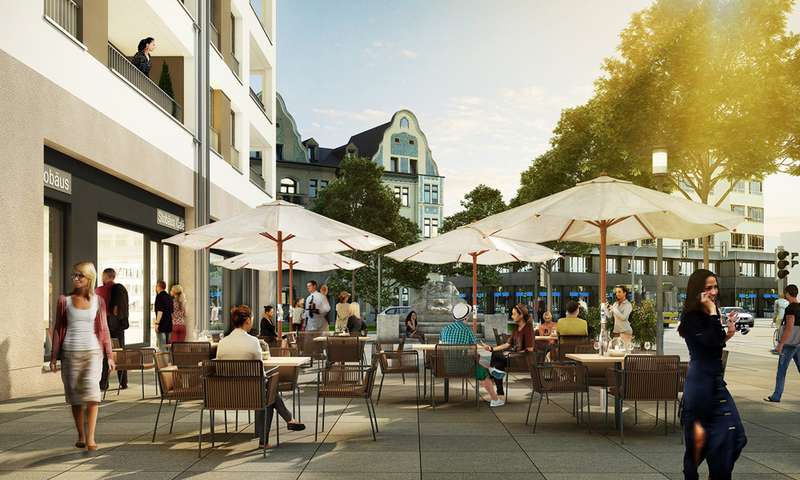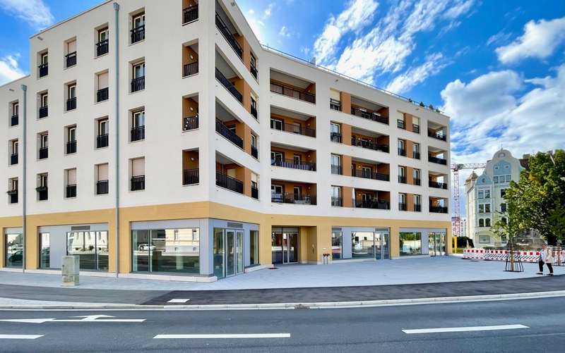 Stobäusplatz is located in the immediate vicinity of Regensburg's historic old town, which is recognized as a UNESCO World Heritage Site. In the sense of urban repair, the derelict site was developed as an urban quarter, i.e. individually legible houses were formed according to their function. On the western side of the triangular site facing the old town are the three residential buildings with commercial space on the first floor. On the eastern Weißenburgstrasse are the two hotels Novo and IBIS. The newly designed square, with its historic Stobäusplatz fountain as a landmark, offers the highest quality of stay with a unique view of the Regensburg Cathedral. The modern high glazing of the outer facade of the commercial units offers optimal advertising effectiveness. Furthermore, coveted customer parking spaces are available in the building's own parking garage. Commercial space: Store 01: 254.19 sqm Store 02: 107 sqm Store 03: 283.09 sqm Store 01 and store 02 can also be combined into one large commercial unit.