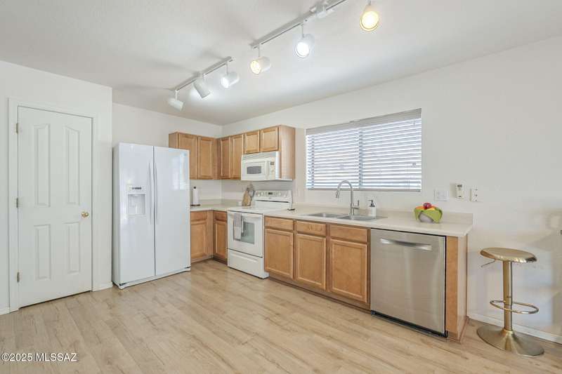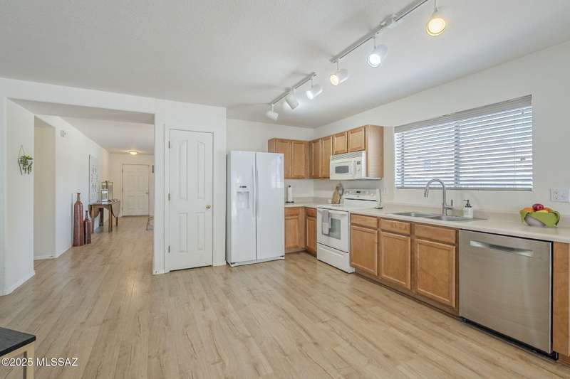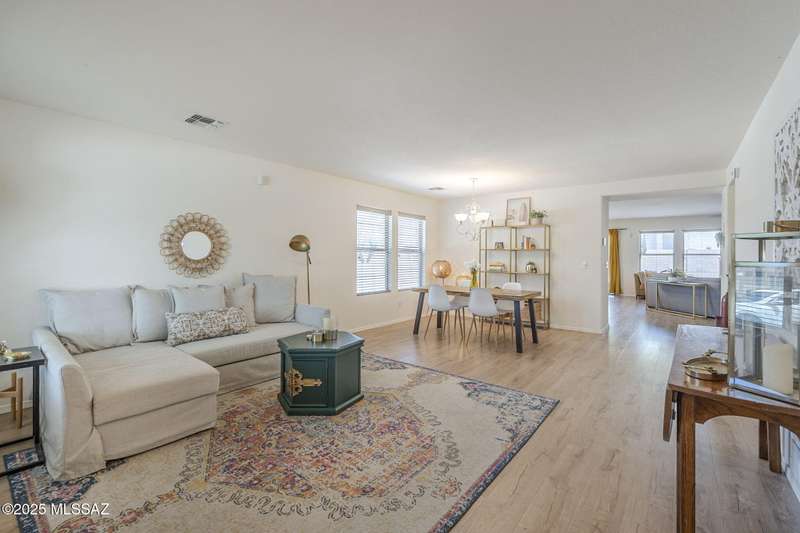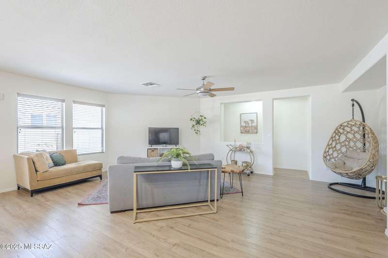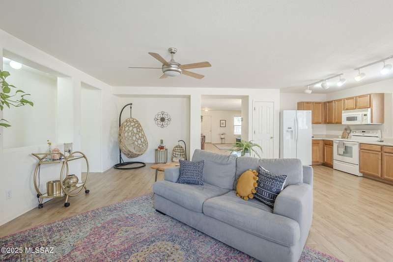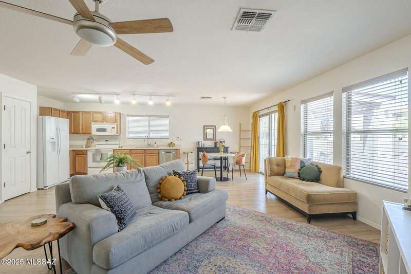 TURN KEY! Beautifully maintained 3BD/2BA home on desirable cul-de-sac, corner lot in the heart of Rancho Vistoso. This residence offers a bright and open floorplan and 1,669 SqFt of living space. A spacious great room seamlessly connects to the open concept family room and kitchen- ideal for both everyday living and entertaining. Updated laminate flooring throughout the main living areas, adds warmth and durability. The primary suite features a walk-in shower and ample closet space and is a peaceful retreat from the rest of the home. Additional highlights include a 2-car garage, covered patio and low-maintenance landscaping. A prime location, just minutes from shopping, parks, scenic trails, and top-rated schools. Don't miss this incredible opportunity to own a lovely home in Oro Valle