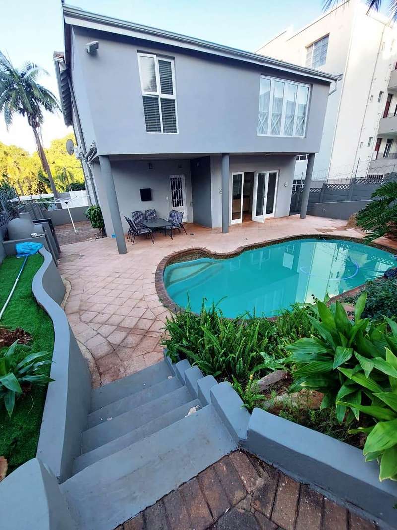 URBAN SPLENDOUR! Step into a spacious, low-maintenance home with grand appeal. Enjoy drive-in access, ample parking, and a secure garage. Unwind in the pool and entertainment area on warm summer evenings. Boasts nearly four bedrooms?Çöperfect for a study or guest suite. Main bedroom includes a walk-in closet and en-suite bathroom. Additional separate bathroom upstairs for convenience. Modern kitchen with generous built-in cupboards. Expansive lounge and dining areas ideal for hosting. Outbuilding can be used for staff or additional income. Prime location near Durban Central, beaches, and top schools.