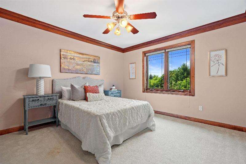 Welcome to Genesee Lake Farms, a gorgeous private neighborhood in Oconomowoc just minutes from all Oconomowoc has to offer with its lakes, parks and restaurants. This two-story home sits on a beautiful 1-acre lot with access to a neighborhood pond and playground. Inside, you'll find 4 beds, 2.5 baths, and 3-car garage. Main level includes Brazilian cherry hardwood floors, open floor plan, and floor-to-ceiling windows. The heart of the home is the gourmet kitchen with granite countertops, seamlessly connected to the great room by a double-sided fireplace--ideal for cozy gatherings and entertaining. Primary suite has spacious sitting area and double closets with access to the large ensuite bath. You will love the outdoor space! Room measurements are estimates and not verified by broker.