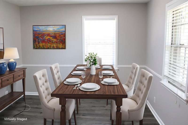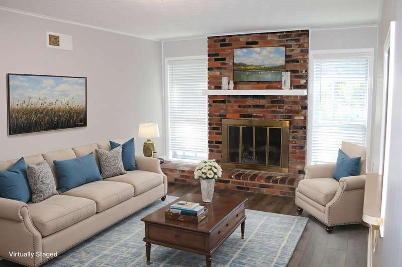 Move-in ready and full of charm! This inviting one-level home in well-established neighborhood offers 4BRs (or 3BRs plus 16.2x12.2 office) and 2BAs with fresh interior paint. Entertain in the formal dining room or relax by the cozy fireplace in the 18.6x11.7 great room. The 12x12 primary suite features updated bath with soothing jetted tub. Eat-in kitchen boasts tile floor, large stove with griddle, pantry, and dishwasher. Thoughtful touches include swirl-texture ceilings, sliding barn closet doors, Ring camera, washer/dryer and refrigerator to remain, plus huge laundry room with room for second fridge and freezer. Laminate wood flooring mostly throughout, new carpet in two BRs, kitchen and baths have tile floors. Enjoy the outdoors in the fenced rear yard, with mature trees, 12.4x11 covered patio, dog run, and 15.8x11.10 storage building with cabinets. Low-maintenance brick/siding exterior and architectural shingle roof complete the package. Call now! Some photos virtually staged.