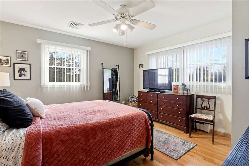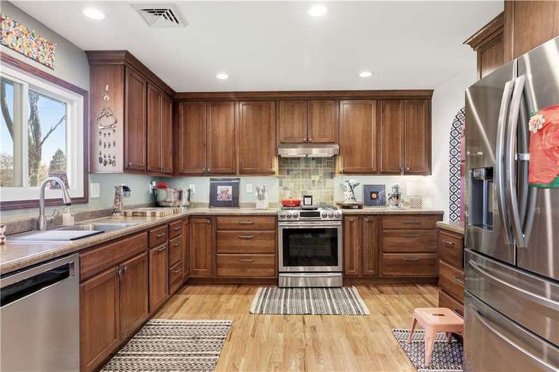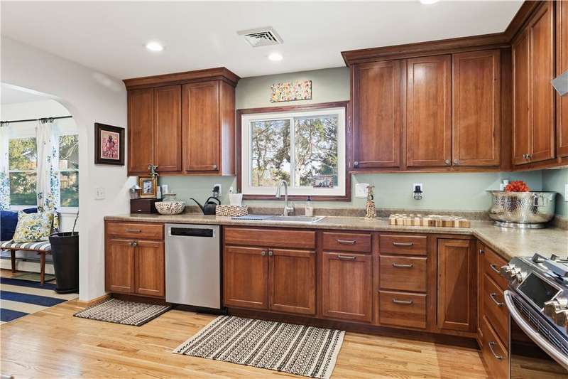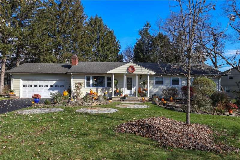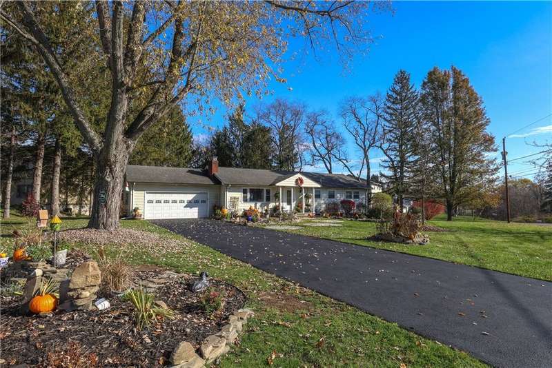 Beautifully maintained Ranch in a great location! This 3 bedroom, 2.5 bath home offers comfortable one floor living with an owner's en suite bedroom. Features include gleaming hardwood floors, central air, and a gas fireplace for those warm, cozy evenings. The updated quality kitchen boasts soft-close cabinets, storage drawers for all your pots and pans, newer appliances, and even a built-in handy spice cabinet. Both bathrooms have radiant floor heat, invisible pet fence to keep your pets safe, and even electric car charging station. Enjoy the convenience of an attached garage, vinyl replacement windows, and an amazing walk-out basement currently with a family room, art room, and plenty of storage spaces - it's perfect for extra living space. Outside you'll find some custom landscaped areas, patio, storage shed, and a half-acre lot. Move-in ready and full of charm!
