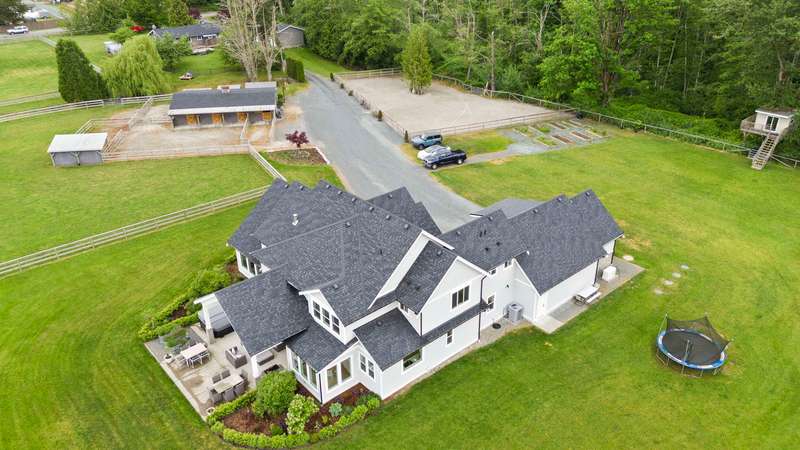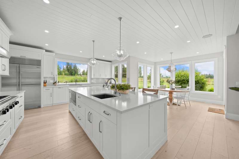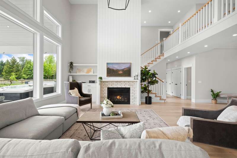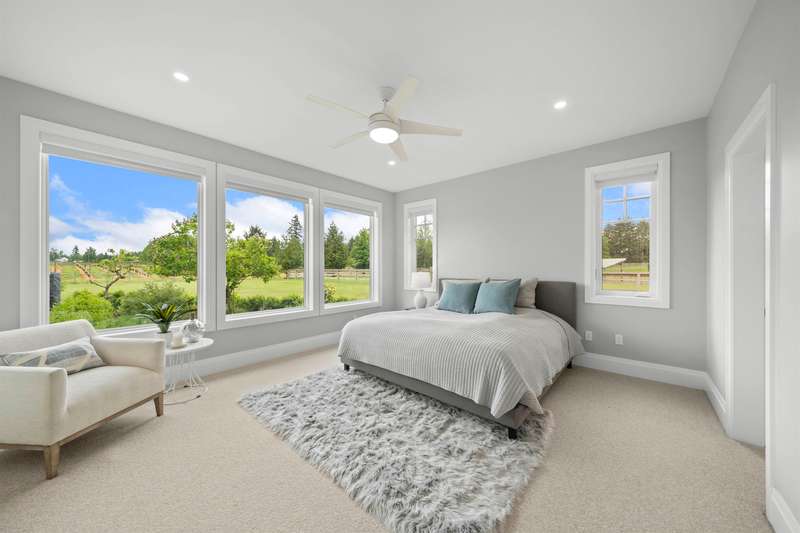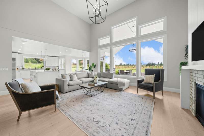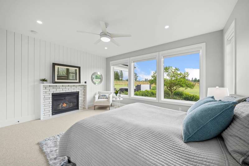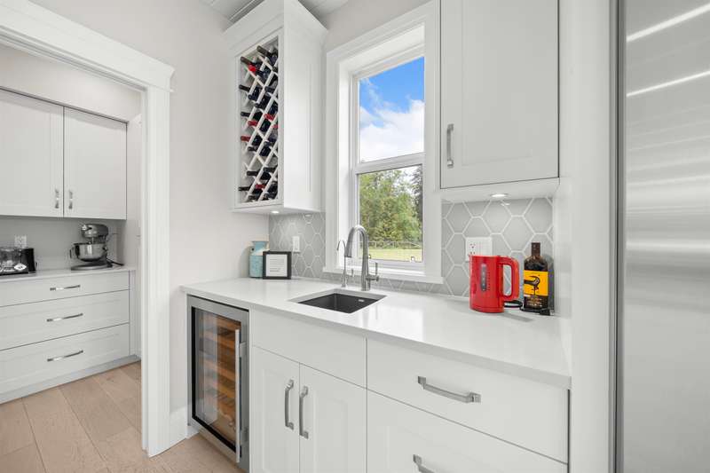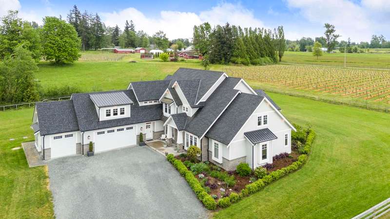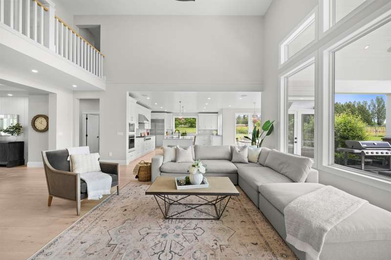 Discover the perfect blend of luxury and natural beauty in this stunning 2 storey estate, offering panoramic views of a vineyard and rolling pastures. Designed with timeless transitional style and open-concept living, this home delivers comfort, elegance, and functionality throughout. It begins with a bright living room featuring a double-height ceiling that flows seamlessly into the dining area and a chef’s kitchen, fully equipped with Wolf and Sub-Zero appliances. The main floor also features a primary suite that provides a peaceful and private retreat. Enjoy the comfort of AC indoors, relax under the spacious covered patio, or unwind in the hot tub. For the hobbyist, there’s a triple garage, a 6-stall barn, and a 22' x 44' detached shop. Truly one of a kind, come see for yourself!