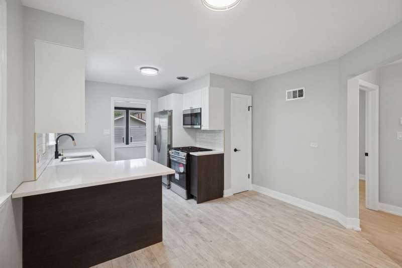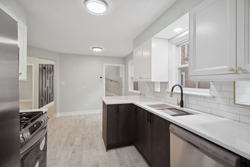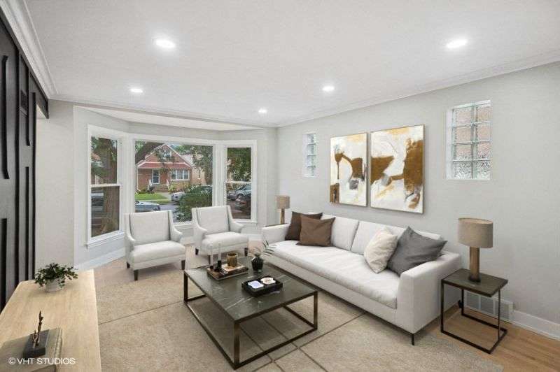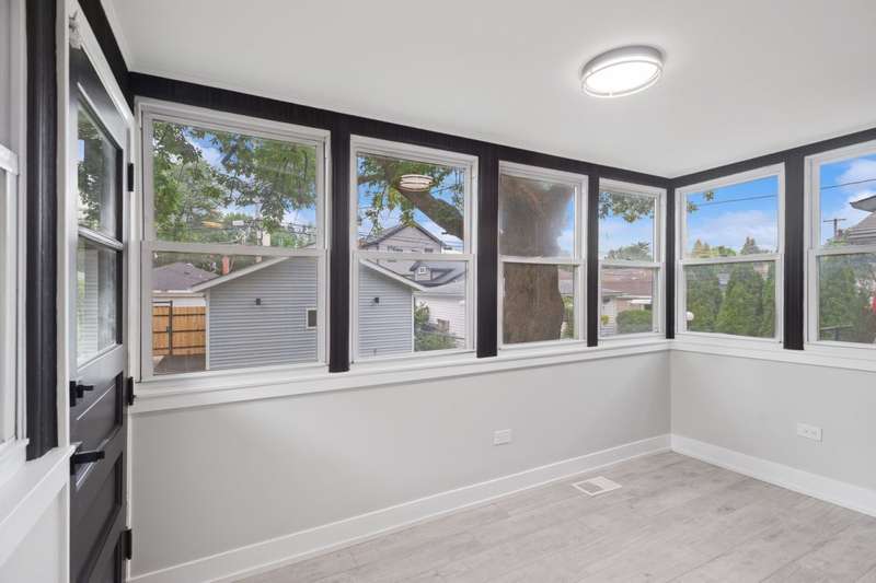 Stylish, Spacious & Fully Renovated in the Heart of Jefferson Park! This beautifully updated 4-bed, 2.1-bath home blends timeless charm with modern comfort. From the moment you step inside, you'll notice the warm white oak-stained hardwood floors and natural light pouring in through energy-efficient vinyl windows. The open-concept main level features a generous living room, two bedrooms, and a full bath-ideal for flexible living or guest space. The showstopper kitchen was fully gutted and reimagined with quartz countertops, white shaker cabinetry, stainless steel appliances, and a classic subway tile backsplash. A cozy, finished porch just off the kitchen offers the perfect bonus space for a home office, reading nook, or playroom. Upstairs, you'll find two more bedrooms and a convenient half bath. The fully finished basement-complete with exterior access-boasts a spacious family room, custom wet bar, a sleek full bath with walk-in shower, dedicated laundry area, and ample storage. Major updates include: new HVAC & A/C condenser, new 2-car garage, copper plumbing, upgraded 100-amp electrical panel, spray foam insulation, and all-new mechanicals-ensuring peace of mind for years to come. All this in a fantastic Jefferson Park location near parks, top-rated schools, shopping, Metra & Blue Line, and easy expressway access. Truly a turn-key gem you don't want to miss!