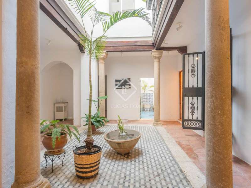 Lucas Fox presents this stunning century-old house in the heart of Málaga's historic centre , on a quiet pedestrian street. Located on a narrow pedestrian lane in the city centre, it offers easy access to cultural attractions, local restaurants, and markets. Furthermore, its proximity to the airport and the beach makes it ideal for both residents and investors seeking a property with excellent rental potential. The spacious 420 m² property has been meticulously renovated, although some original features have been preserved. It is characterized by its traditional Spanish architecture with details typical of a riad. The facade features decorative balconies, while the interior boasts an Arabic-style courtyard with ceramic details, ornamental plants, and columns with capitals. It boasts a functional layout . On the ground floor, in addition to the spacious patio, there are three cozy bedrooms, an office or additional bedroom , a full bathroom , and storage areas that maximize the use of space. The first floor features a spacious living room and a bright dining room , with windows that let in natural light and offer street views. It also includes a well-equipped kitchen with rustic charm. The large main bedroom with its en-private bathroom is also located on this floor. On the second floor, there are three additional bedrooms and another bathroom, ideal for large families or for entertaining guests. Each room is designed to maximize comfort and functionality, with quality finishes and historical details. From the second floor, there is access to a spacious terrace, one of the property's greatest assets. This outdoor space provides a private place to relax, ideal for enjoying Malaga's mild evenings. This is an exceptional and historic property of great beauty in the centre of Málaga. Thanks to its functional layout, quality finishes, and prime location, this house is ideal for families seeking a spacious and characterful home. It also represents an attractive opportunity for investors looking for a property with great potential for holiday rentals in one of Spain's most visited cities.