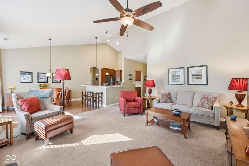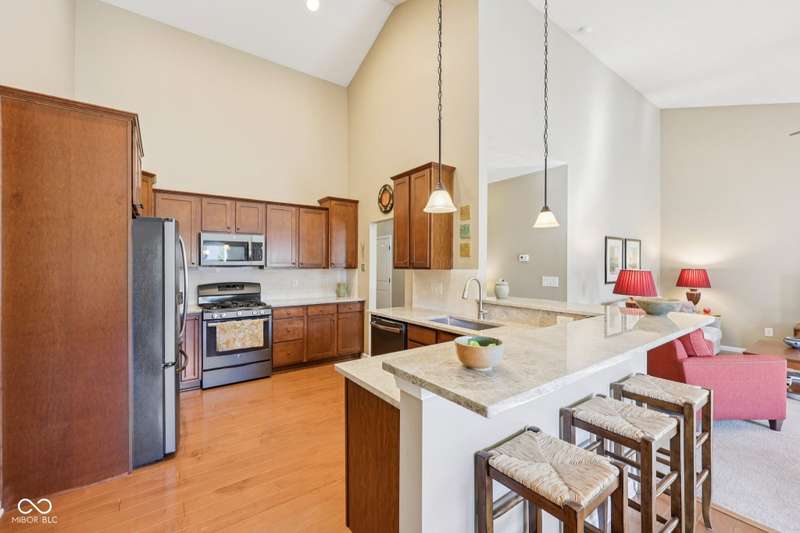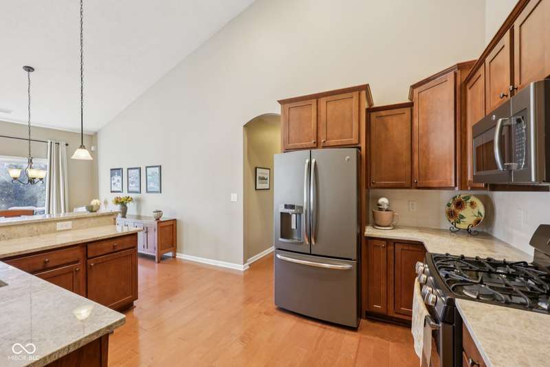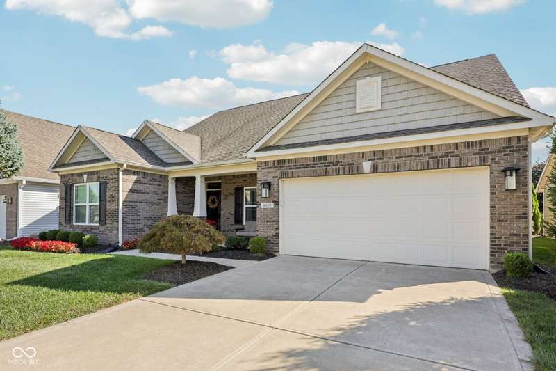 Welcome home to this meticulously-maintained brick 3BR+Loft. A cozy front porch with craftsman pillars and bright seasonal landscaping will greet your guests. The Primary Bedroom features a large walk-in closet, and ensuite bath with garden tub, double sinks and raised height vanity. 2 additional main floor bedrooms share a full bath just across from the vaulted Dining Room with ceiling fan. Vaulted Great Room flows into the sunny Breakfast Nook. The Kitchen features quartzite countertops, stainless steel deep-bowl sink and marble backsplash all new in 2025. GE slate finish fridge, gas range, microwave and dishwasher. Enjoy the 2nd floor finished Bonus Room as a large office, man-cave, or craft room. Washer and Dryer will stay with the home. The back patio is surrounded by perennials and large evergreens, providing a semi-private space to relax and entertain. A gas line and connection for grill make entertaining a breeze. This community provides snow removal, lawn mowing, trimming, 5 lawn treatments and mulching. Bee Camp Creek Trail surrounds the neighborhood. Enjoy all the water fun at nearby Geist Reservoir and Geist Waterfront Park.