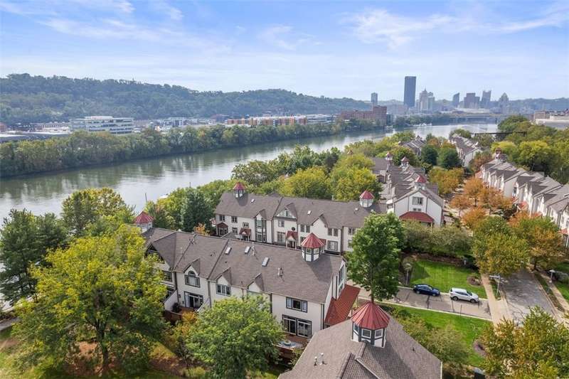 Luxury island living meets city convenience! This end-unit overlooks a beautiful green space, featuring a light-filled open floor plan and seamless indoor-outdoor living, complete with a spacious side porch, an oversized composite deck, and a?relaxing hot tub. The inviting white kitchen anchors the home, perfect for both everyday living and entertaining. Embrace an active lifestyle with direct access to the Three Rivers Heritage Trail, pickleball, the rowing club, and a full-service marina?truly a boater's dream. Dine at the riverfront restaurant and enjoy easy access to universities, hospitals, Rt 28, Downtown, and the Strip District. Recent upgrades include a new roof, siding, front door, deck, and AC. Washington's Landing combines sophistication, convenience, and recreation.