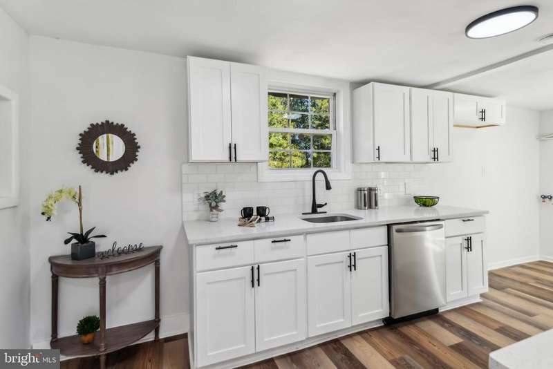 Perfect balance of seclusion and accessibility! Beautiful updated 3 bed, 2 full bath on 1.11 private acres! Lovely foyer entry with new waterproof vinyl plank flooring that flows throughout the main level. Newly remodeled kitchen with white shaker cabinetry with soft close drawers, quartz countertops, subway tile backsplash, under mount sink with black goose neck faucet and new stainless appliances. Convenient laundry area off the kitchen as well as a bright and sunny dining area with vaulted ceiling and sliding glass door to the side yard. Living room with large closet and ceiling fan leads to a spacious main floor bedroom with large double door closet. A lovely full bath with tub/shower completes the main level. Upstairs find 2 additional bedrooms, both with new carpet, ceiling fans and vaulted ceilings. The larger bedroom presents as a primary suite with walk-in closet and remodeled bath with stall shower. Additional features per seller include a newer roof, newer hot water heater, all new lighting, six panel doors, mini split systems providing both heat and air, 6 panel doors and a freshly painted interior. Seller also to provide well and septic certs! Great location offers a country setting yet is so close to downtown Egg Harbor City as well as the Rail Station. The best of both worlds!