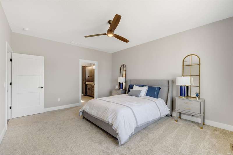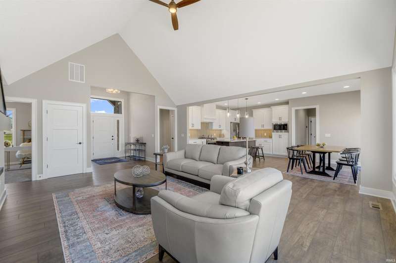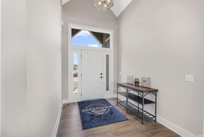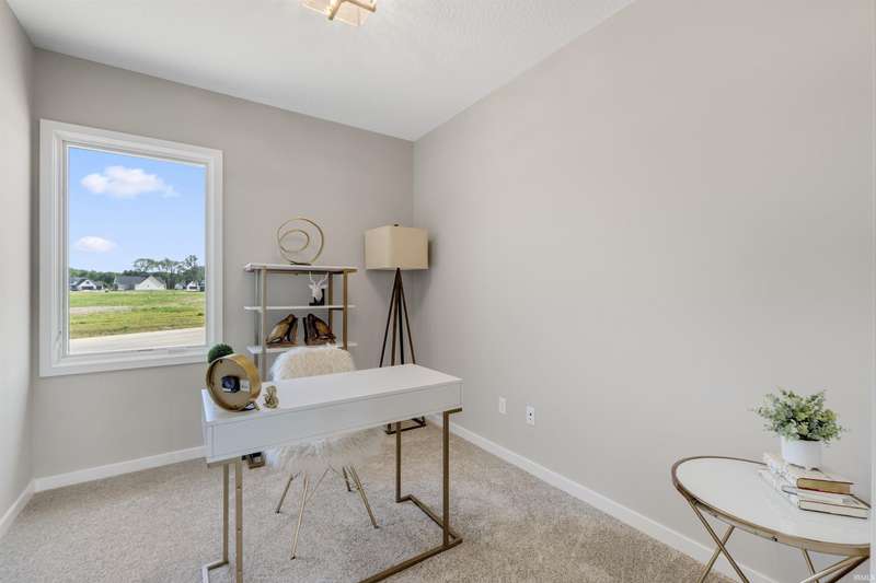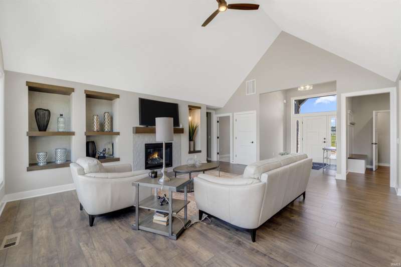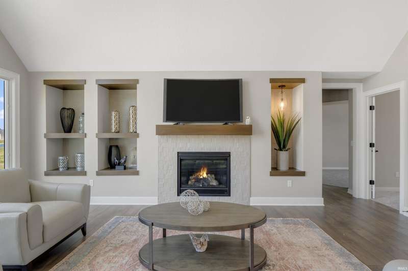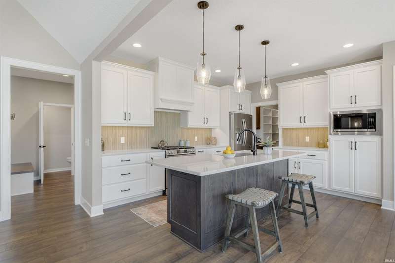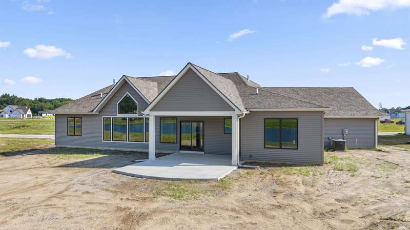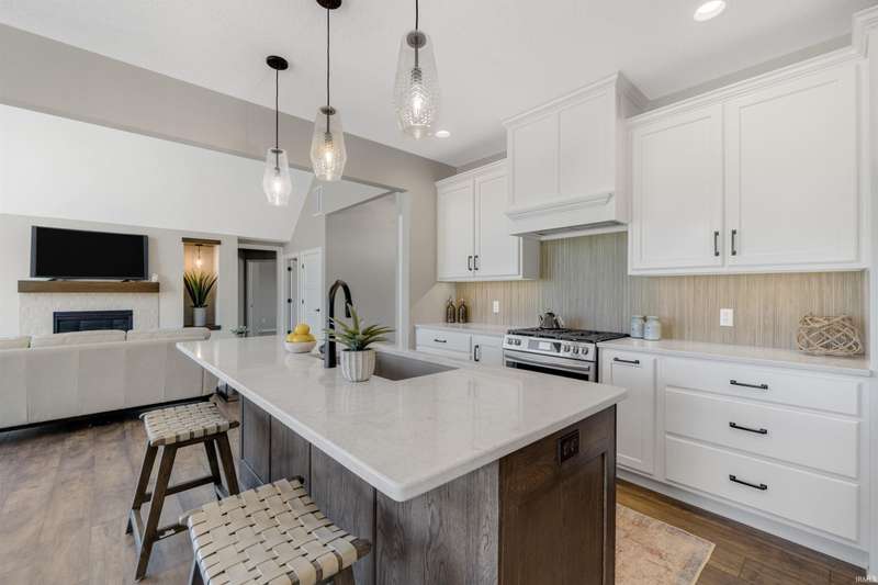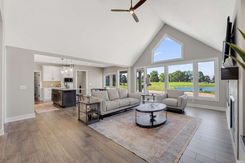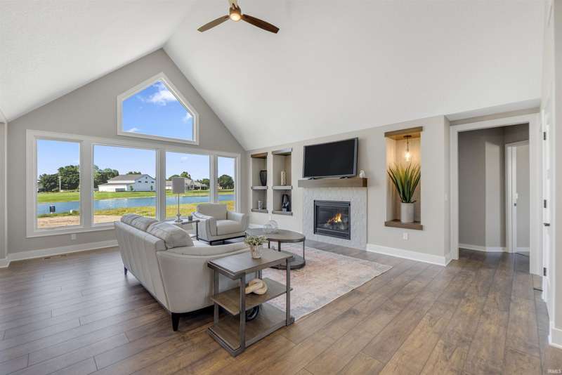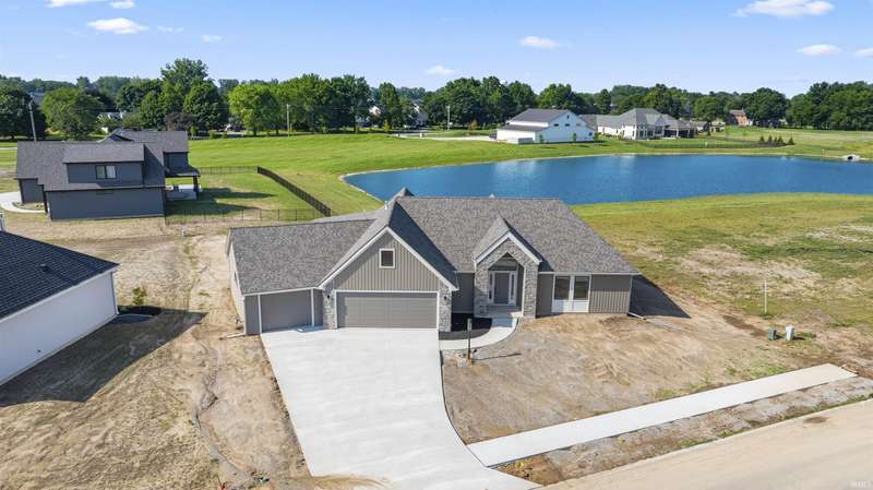 New Construction - Bob Buescher Homes is excited to announce the completion of a brand new single-story home in the highly sought-after community of Cascata Estates. This modern and functional layout encompasses 2,032 square feet of living space, featuring three bedrooms, two and a half bathrooms, an office, and a spacious three-car garage measuring 971 square feet. The home also boasts a rear covered porch with additional patio space, perfect for outdoor relaxation. The design showcases exceptional craftsmanship and meticulous attention to detail. The open concept seamlessly connects the great room, kitchen, and dining area, creating a harmonious flow throughout the space. Both the great room and foyer feature soaring cathedral ceilings that enhance the sense of openness, while a stylish fireplace serves as the focal point of the great room, adding warmth and sophistication. An abundance of natural light streams through the large windows, providing stunning views of the water lot with fountain. The custom-designed kitchen is a chef's dream, featuring handmade cabinetry, an expansive 8x3 island, and elegant quartz countertops. The pantry, with its impressive 10 feet of depth, includes a convenient coffee bar to enhance your culinary experience. The spacious primary bedroom suite offers a spa-like bathroom, equipped with a tile walk-in shower, a double vanity with a cultured marble top, a linen cabinet, and a generous 14-foot deep closet for ample storage. On warm days, new homeowners will enjoy relaxing under the covered rear porch while taking in the serene surroundings. This home also includes irrigation for your newly seeded lawn. All new Bob Buescher Homes come with a full kitchen appliance package, and all appliances are covered under their manufacturer's warranty. Additionally, homeowners will receive an invitation to attend an orientation prior to closing, where they will learn about the home’s warranties and maintenance tips. Cascata Estates, developed by Oakmont Development, offers a semi-rural lifestyle while remaining conveniently close to walking trails, shopping, restaurants, Parkview Regional Medical Center, and I-69N. Don’t miss your opportunity to make this beautiful masterpiece yours!