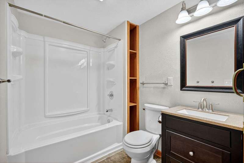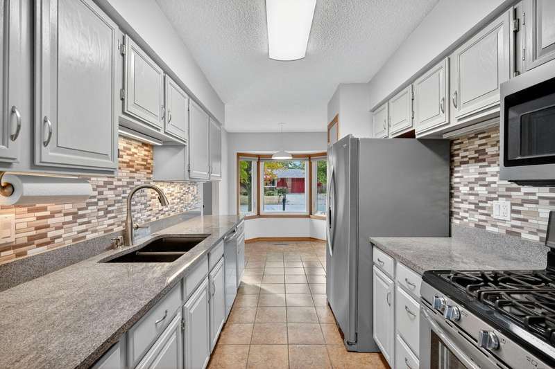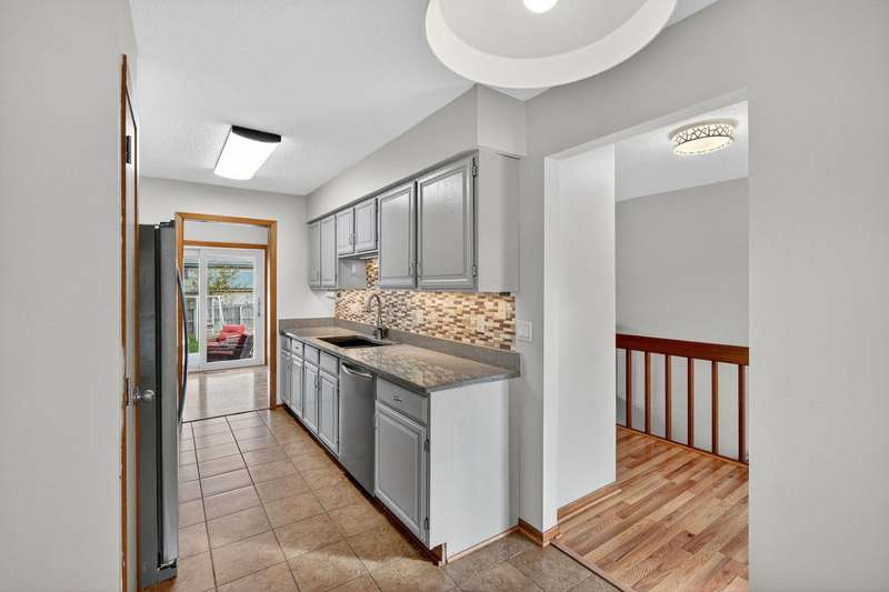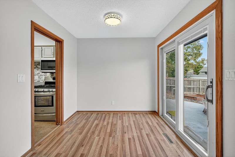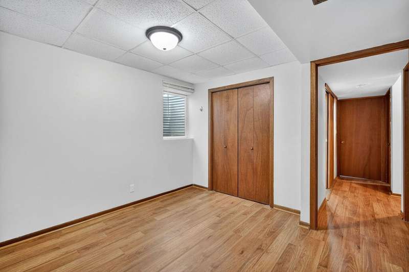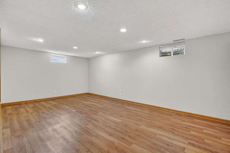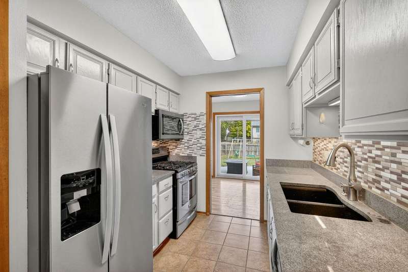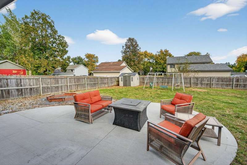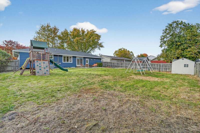 Move-in ready and tastefully updated 4-bedroom, 3-bath ranch with open living spaces and a great fenced yard! Updated interior with fresh paint, new flooring, and modern lighting throughout. Enjoy a bright living and dining area featuring large windows for natural light and a sliding door that opens to the backyard and patio. The kitchen has been upgraded with painted cabinets, granite countertops, stainless steel appliances, and a cozy eat-in nook. Down the hall are three comfortable bedrooms and two remodeled baths, including a primary suite with a tiled walk-in shower. The finished lower level adds even more living space with a large family room, full bath, and fourth bedroom, ideal for guests, home office, or workout space. Outside, you'll find mature trees, a new concrete patio, storage shed, Rainbow play system, and a fully fenced yard. Additional features include a heated and insulated two-car garage, new Andersen windows, updated roof, gutters, A/C, and exterior paint.