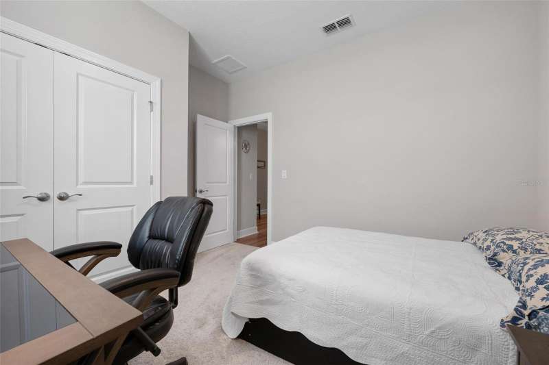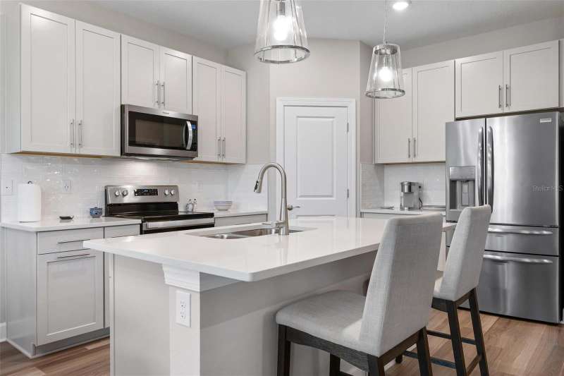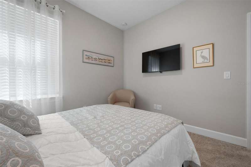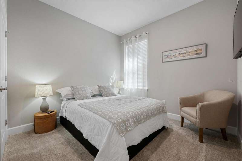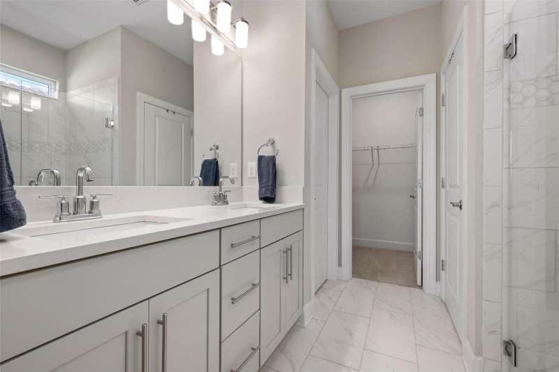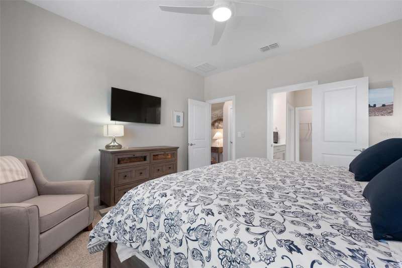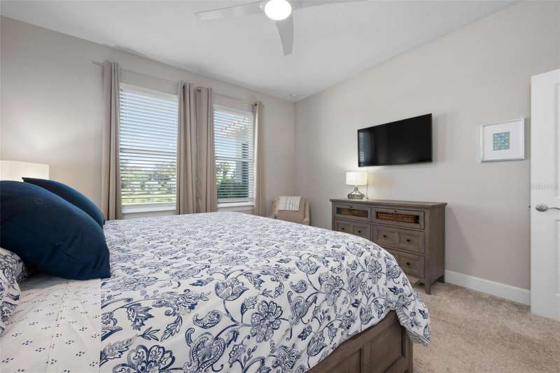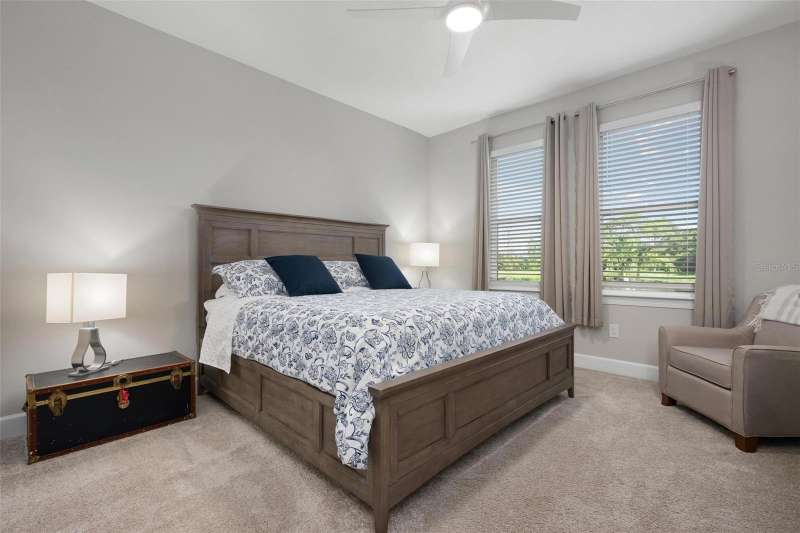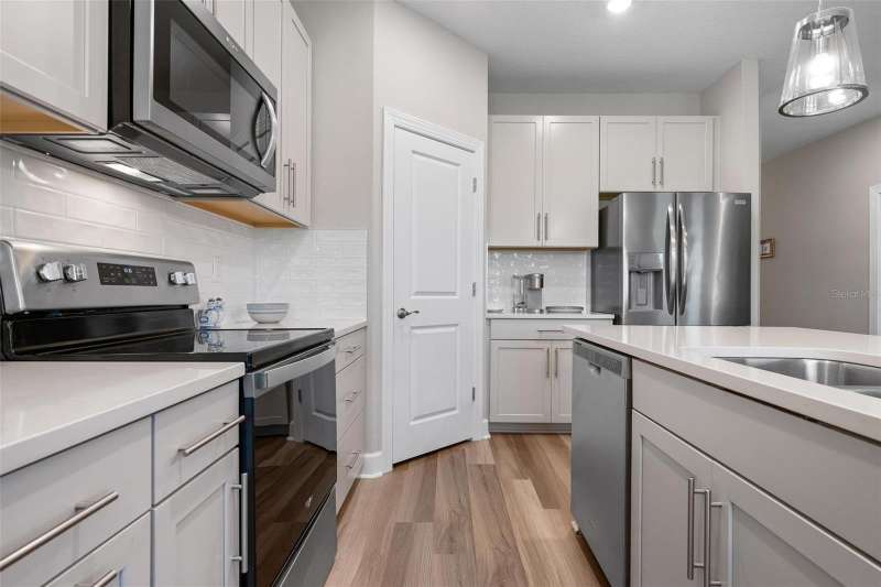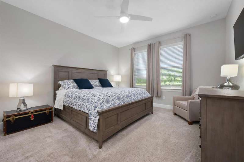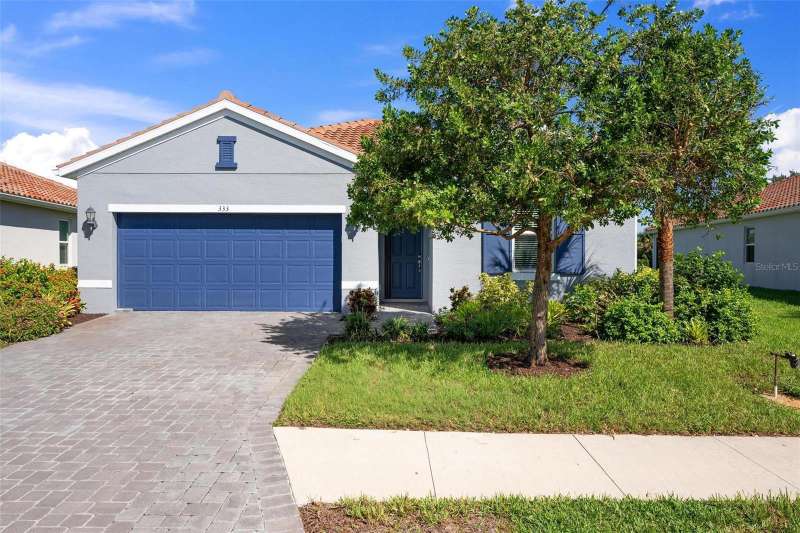 In 2021 this 3 bedroom 2 bath 2 car garage home was built on an oversized lakefront lot in gated Venice Woodlands, and it shows like new! Open the screened front door and the beautiful luxury vinyl plank flooring flows, welcoming you into the bright great room and kitchen area. The large great room offers a ceiling sound system, water views, with a convenient floor outlet to avoid those messy cords. The kitchen has soft grey cabinetry, with built in pull-out shelving in the lower units and a walk-in pantry. Soft quartz counter tops with a breakfast bar add to the finishes. The dinette area has sliders to the outdoor space. Step into your extended lanai with panoramic views of water and preserve to capture all that mother nature offers. You just might never leave! The primary bedroom, also with water views, has a large main bathroom with double sinks and an oversized walk-in closet. The other two bedrooms and second bath are in the front of the home providing privacy to family members and guests. Just off the kitchen is the laundry room with storage and it has been plumbed for a utility sink. The two car garage has an epoxy floor. NO CDD FEES and LOW HOA fees are a plus! Impact windows too! The amenities are rich at a low monthly cost and include lawn care, irrigation, clubhouse, a fitness center, community pool and pickle ball courts, bocce ball and various social clubs. Enjoy the nearby Sleeping Turtle or Carlton Preserves. This home is being home furnished so catch the next sunset from your lanai!