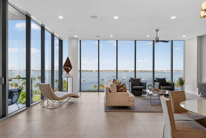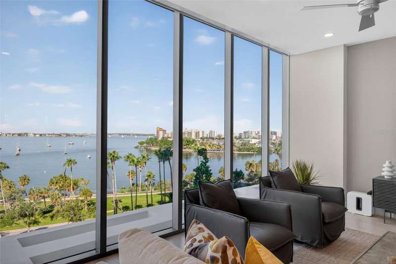 If you’re looking for a downtown condominium with unparalleled views of the Bay and City lights, framed by the drama of a panoramic southwest corner, look no further than this exceptional EPOCH residence in Sarasota’s most desirable walkable neighborhood. Arrive via your private elevator foyer and be greeted by walls of glass showcasing sweeping vistas from Marina Jack to Big Pass and the Gulf beyond. Spanning 3,600 air-conditioned square feet, this coastal contemporary home blends sophisticated style, smart technology, and exceptional comfort. Soaring ceilings and an open floor plan enhance the grand scale of the great room, dining area, and expansive terraces, creating seamless spaces for both intimate living and large-scale entertaining. The gourmet kitchen is a true centerpiece, with a large island, bespoke Cucine Ricci Italian cabinetry, quartz countertops, and ultra-premium Gaggenau appliances including a six-burner gas range, double ovens, side-by-side refrigerator/freezer, and wine refrigerator. Access to the terrace with a summer kitchen makes indoor-outdoor living effortless. The owner’s retreat is an unrivaled sanctuary with direct bayfront terrace access, generous custom walk-in closets, and a spa-inspired bath featuring a curbless walk-in shower, sculptural soaking tub, double vanities, and two private water closets. The guest wing includes two en-suite bedrooms and a private den/TV lounge, providing comfort and privacy for family and visitors. Every finish speaks to refined living, from large-format porcelain flooring to Lutron automated shades, smart lighting controls, multi-zone air conditioning, and an oversized laundry room. A private storage space and two secure deeded parking spaces further elevate convenience. At EPOCH, residents enjoy world-class amenities: a 70-foot recreation and lap pool with spa, fire tables, pool bar and grill; a dramatic rooftop terrace; a Residents’ Club; state-of-the-art fitness center; massage suite; steam showers; and a private guest suite for visitors. Meticulously conceived to honor the Sarasota School of Architecture, EPOCH offers just 23 exclusive residences where contemporary elegance and unmatched quality converge. Nestled on the shoreline of Sarasota Bay and steps from downtown’s cosmopolitan core, this is the pinnacle of Gulf Coast living.