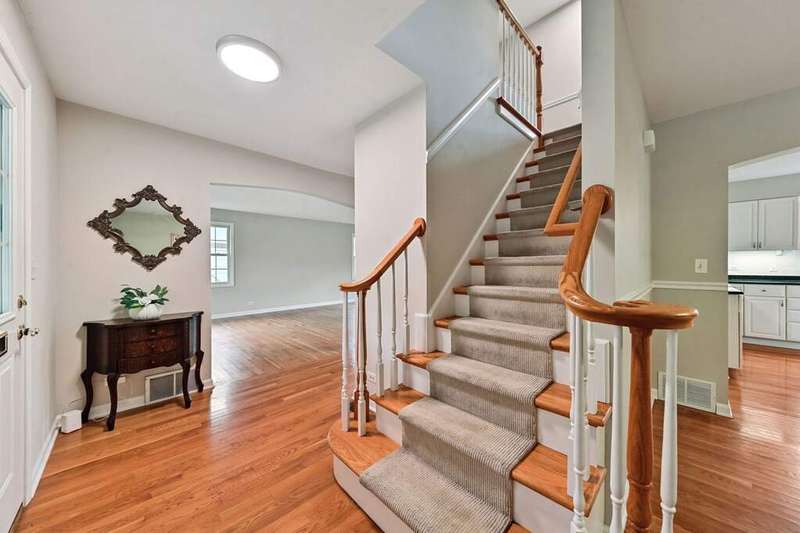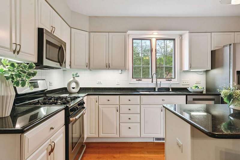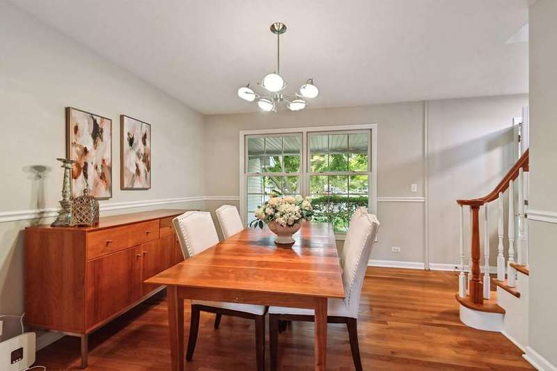 Welcome to this classic Colonial, beautifully set on a tree-lined street where timeless charm meets everyday comfort. A large, welcoming foyer opens to expansive formal living and dining rooms, perfect for hosting and entertaining. Sunlight fills the home, highlighting sleek hardwood floors and an inviting flow. The bright kitchen with crisp white cabinets and a center island with seating opens to the family room, where a cozy fireplace and sliders lead to the backyard. Everyday convenience includes main-level laundry and a powder room. Upstairs, the grand primary suite features a private bath and a walk-in closet, accompanied by three additional generously sized bedrooms, one with its own walk-in closet, and another full bath. The finished basement expands the living space with a large recreation room, a versatile/flex room ideal for an office or workout, and abundant storage. Outside, a lush backyard with a deck is perfect for barbecues, quiet reading, or simply relaxing outdoors. Ideally located near Flick Park, Glenbrook South High School, the Metra, shopping, and dining.