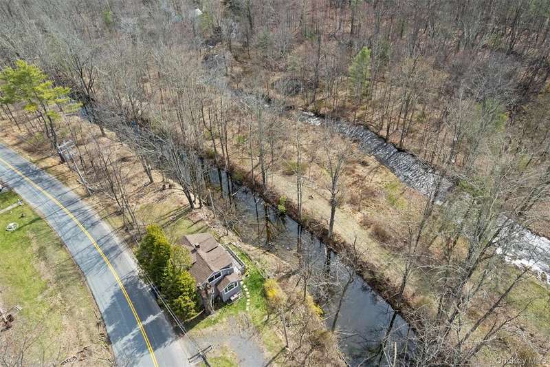 Your sanctuary is calling - a move-in ready 2-bed, 1-bath gem that feels like it was plucked straight from the pages of a fairytale. Overlooking the Delaware and Hudson canal, this home invites you to slow down, breathe deeply and bask in the magic that surrounds you - inside and out. The open-concept first floor offers a cozy, effortless flow between the kitchen and living room with options for a dining area. In maintaining its flow, the bathroom is tucked away on the other side of the living room. Upstairs, each bedroom provides a comfortable retreat, making everyday feel like a getaway. Large windows envelop the home, filling every room with golden light and elevating the space. Outside, the expansive yard is a true wonderland. Towering trees, vibrant greenery, open skies and the rippling sounds of the canal and Homowack Kill set the tone for high-spirited days, serene evenings and moments you'll never want to end. With incredible yard space on each side of the home and the ability to roam on the other side of the canal, you're sure to be enchanted. This property is one-of-a-kind - where magic, nature and comfort come together in perfect harmony. Gift yourself this escape from the everyday - a place not just to live, but an experience all its own. Selling as-is. New well pump & piping 2024, septic approx. 5 years old, roof approx. 6 years old.