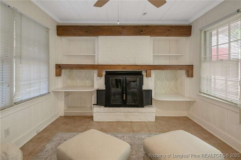 Charming Updated Haymount Home! Beautifully updated 3BR/2BA located within walking distance to shopping, dining, and entertainment. BRAND NEW ROOF AND GUTTERS! Features include hardwood floors, wood-burning fireplace, large picture windows, and a spacious kitchen with granite countertops and stainless steel appliances (including fridge). Flex room/den with wood-burning insert, built-ins, and wood beam accents. Primary suite with built-in bench, two spacious guest rooms, and full guest bath. Laundry area with washer/dryer. Situated on a .32-acre corner lot with mature landscaping, fenced yard, storage shed, carport, and wraparound back porch. A must-see!