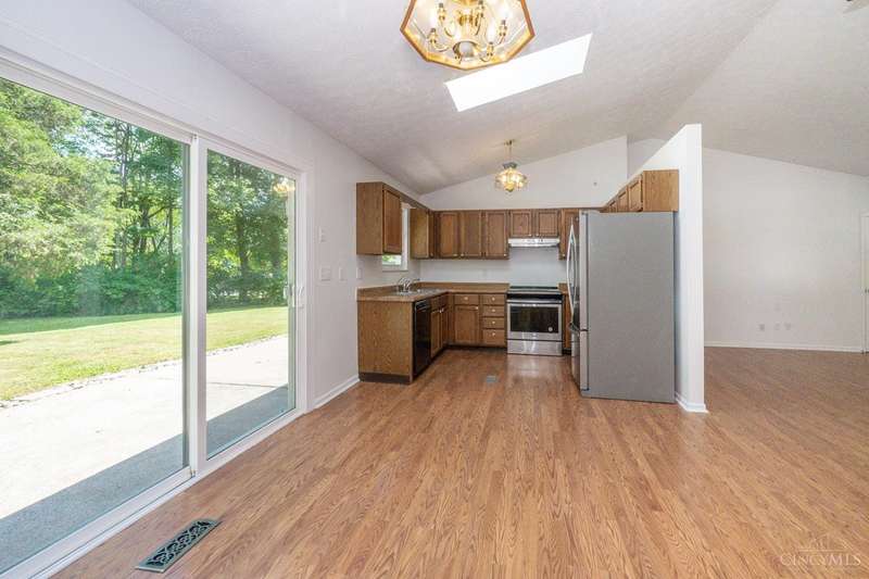 Welcome home to this inviting and well maintained 3 bedroom, 2 bath ranch. Sitting on almost an acre of land, this home is a blend of both comfort and privacy. It offers the ease of single level living on a beautiful, wooded lot. Inside you will find a cathedral ceiling, skylight and a spacious living area that's filled with natural light. The primary suite features its own private bathroom and shower. There is plenty of space for parking in the 2-car garage and a 24x32 pole barn with a concrete floor for any projects you may want to work on. Close to shopping and highways for added convenience.
