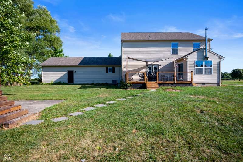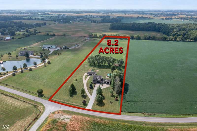 Located just a few minutes outside of New Castle, this stunning property features 8.2 acres of land offering the perfect blend of privacy and convenience. The beautiful two story home has 2,912 SF of living space, 3 bedroom, and 3.5 bathrooms. Step inside to a spacious living room that features an electric fireplace. The large dining room is the perfect space to gather with friends. The recently updated custom kitchen comes fully equipped with appliances. The cozy reading room features a wood burning stove and a beautiful view over the large back lawn. Upstairs, you will find a primary suite with a spacious bath, two additional bedrooms, a cozy family room, and a convenient laundry room. The home features an attached 3-car garage plus a 2-car detached garage/workshop complete with a 30x19' entertaining space-perfect for gatherings, hobbies, or extra storage. Enjoy the outdoors with a large back deck, an above-ground 30ft pool, and a fire pit area perfect for cool fall nights. With plenty of space both inside and out, this property offers endless opportunities for relaxation, entertaining, and country living-all just minutes from town.