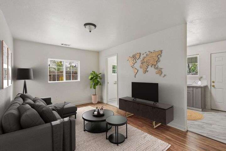 A rare find! Beautifully remodeled home with an attached back unit, perfect for multigenerational living or rental income, located within the highly desired Elk Grove School District. Featuring dual living spaces, the front house offers a spacious living room with fireplace and 3 beds/2baths while the back unit provides an additional 2 beds/1 bath and another cozy living room with separate entrance. Both the main house and back unit offer modern upgrades throughout, including LVP flooring, fully remodeled bathrooms, brand new soft-close kitchen cabinets and quartz countertops in both kitchens, as well as fresh interior and exterior paint. Relax in the spacious backyard where you can easily entertain guests under the extended covered patio, grow a vegetable garden, and watch the kids play. The front yard has been refreshed with rich earthy brown mulch and is adorned with vibrant rose bushes when in full bloom. Additional features include gated front yard for added privacy, storage shed, new hot water heater, and a finished 2 car garage for a clean look. Conveniently located to Hwy 99 for easy commuting. Grocery stores and dining establishments nearby. Elementary school & park just two blocks away. Modern comfort and versatility awaits!