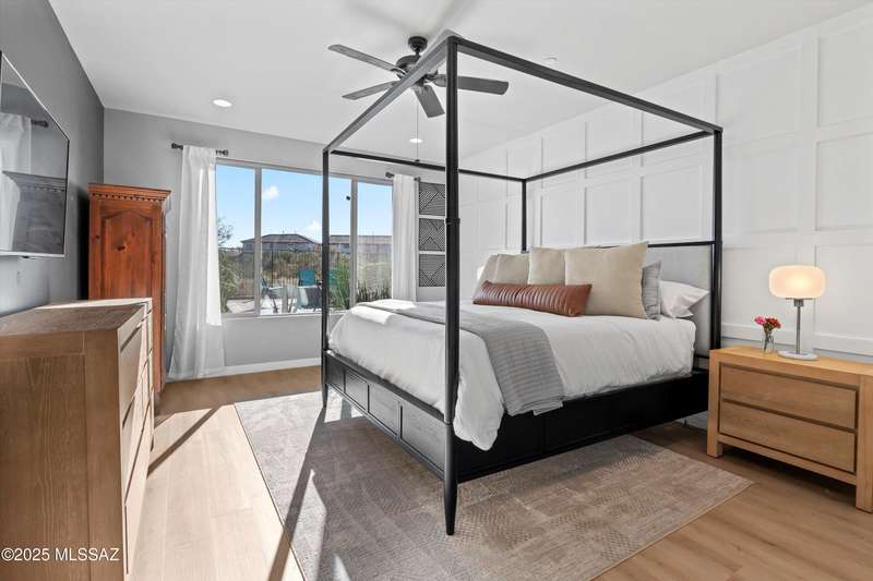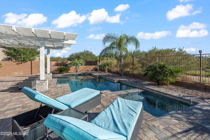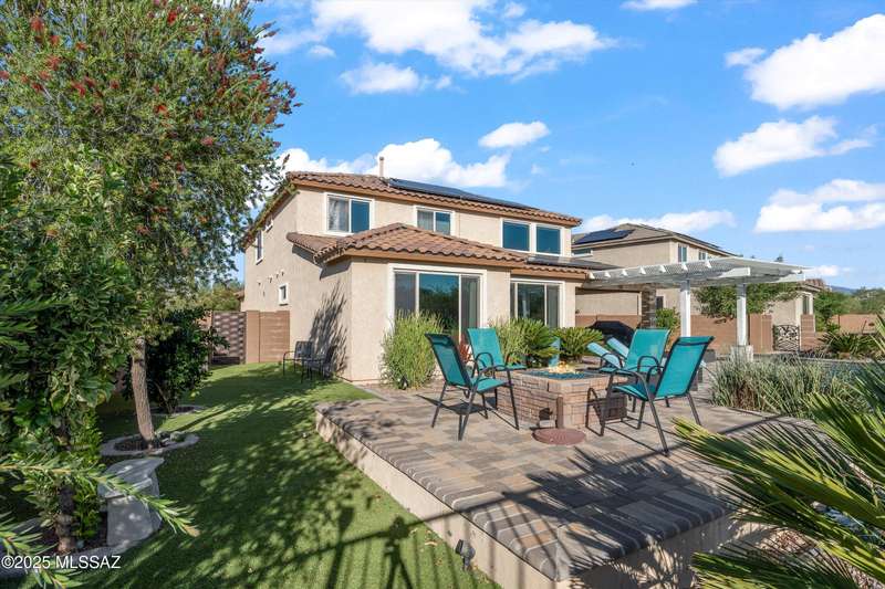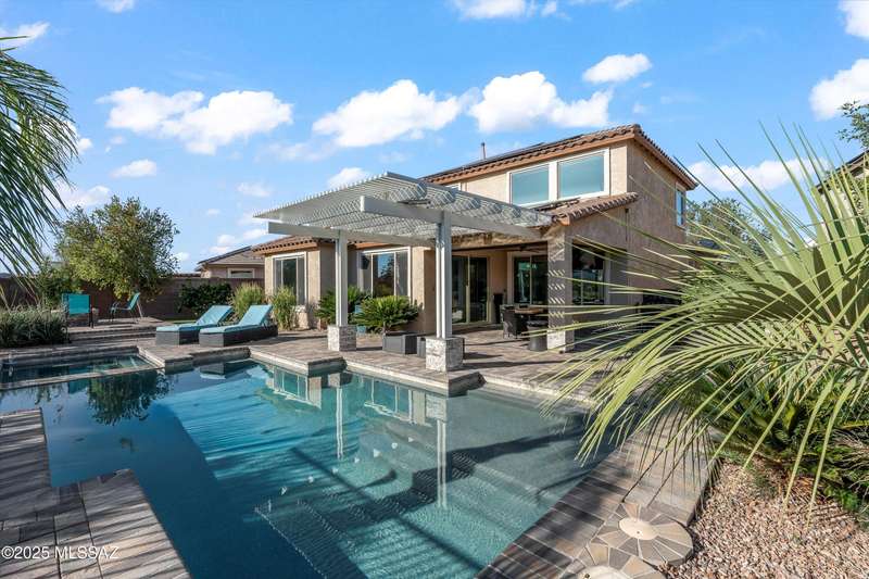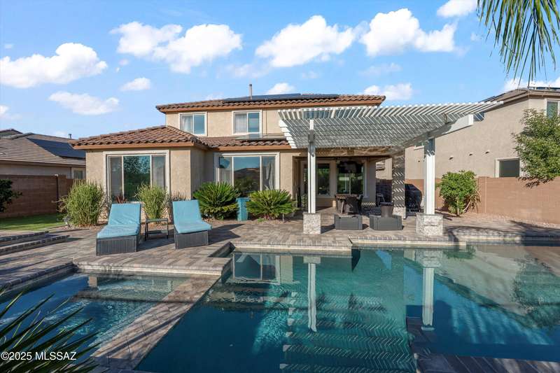 SELLER-PAID RATE BUY DOWN OPTION AVAILABLE WITH ACCEPTABLE OFFER...Updates abound in this exquisite 5-bed 4-bath residence featuring paid for solar, an additional flex room, expanded 2 car garage with custom floors and dedicated work area. This home is located in thesought after Sierra Morado neighborhood and the award-winning Vail school district. The home showcases updated floors and cabinetry throughout, creating a seamless blend of style andfunction. A stunning backyard retreat awaits with a sparkling pool, spa , firepit and outdoor shower. The beautifully landscaped grounds feature mature trees, palm and fruit trees along with shady patio and ramada space perfect for outdoor entertaining.