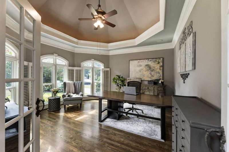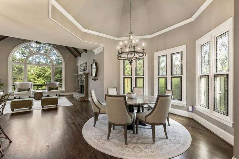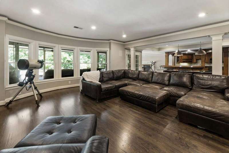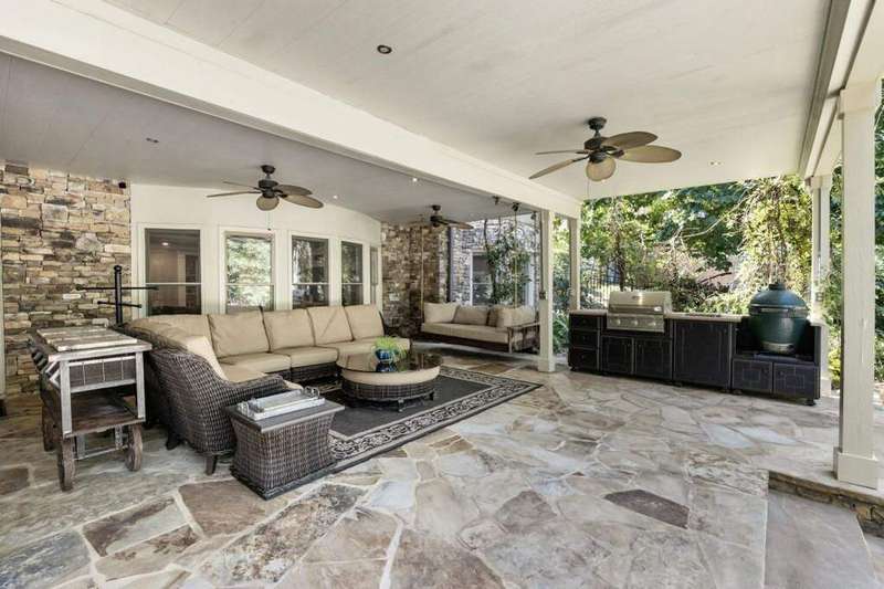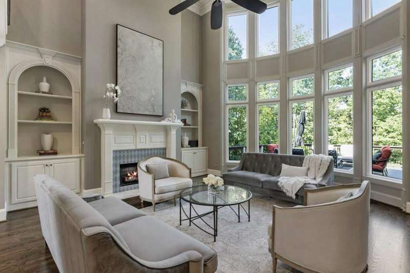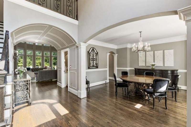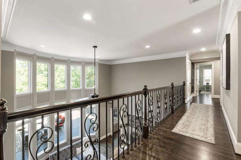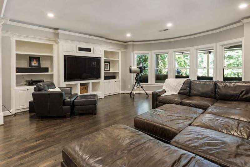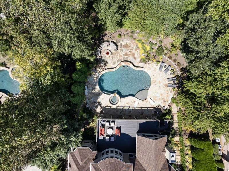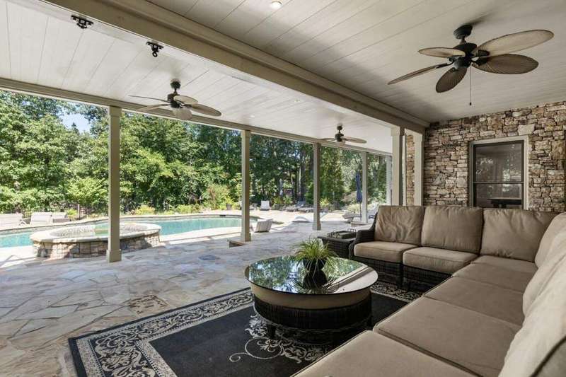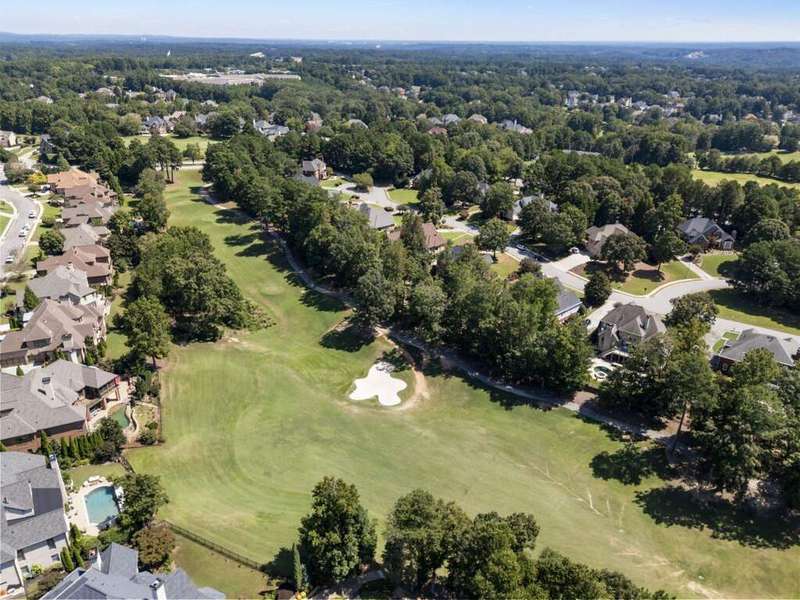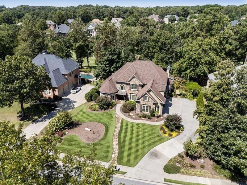 Tucked away in a quiet cul-de-sac within Hamilton Mill's vibrant golf course community, this elegant estate offers timeless style, thoughtful design, and resort-style outdoor living. Perfectly positioned along the seventh hole, the home showcases sweeping fairway views and a beautifully landscaped half-acre lot with a private pool. Upon entering, you are greeted by a bright two-story foyer that sets the tone for the main level. To the right, the formal dining room seamlessly transitions into a custom coffee bar, leading into the spacious kitchen-perfectly crafted for casual living and entertaining. On the left side of the foyer, a private office offers a delightful front-facing view of the yard, providing a serene workspace. Further down the hall, the formal living room impresses with floor-to-ceiling windows, a striking fireplace, and built-in bookcases on either side, creating an inviting space for gatherings. Past the living room is the kitchen and family room. The stylish and functional kitchen features stainless steel appliances, bar seating at the large island, newly painted cabinets, a walk-in pantry, and a sunny breakfast area that opens into the family room. The family room is adorned with a stone fireplace, generous seating space, and access to the back porch. This area acts as the center of the home. The primary suite on the main level serves as a luxurious retreat, featuring an updated spa-style bathroom. It's equipped with a sleek glass-enclosed shower, modern vanities, and a stunning stained-glass window that brings a touch of elegance and charm. Upstairs, you'll find three spacious secondary bedrooms. Two of the bedrooms share a Jack-and-Jill-style bathroom, each with its own separate vanity and ample closet space-making them ideal for family members or guests. The terrace level of this home is a beautifully finished extension of the main living space, designed with versatility and entertainment in mind. At the center of the terrace level is a fully equipped second kitchen; great for hosting gatherings or preparing poolside meals. This kitchen features custom cabinets, black appliances, and a large open area that flows into the main living area. A spacious media room offers space for billiards, table games, and a seating area. The wonderful home theater features tiered seating, built-in surround sound, and dimmable lighting. In addition to entertaining areas, the terrace level includes a guest suite or flex room and a full bathroom. French doors lead directly out to the covered lower patio, where seating areas and under-decking provide shade and comfort while enjoying views of the pool and golf course, as well as access to the gas grill. The backyard of this exceptional home is a private retreat, perfect for both relaxing and entertaining. At its center is a stunning gunite pool, surrounded by lush landscaping and a raised hot tub with a cascading waterfall for a resort-like feel. Just beyond, a built-in fire pit and spacious patio with seating create ideal spots for gathering, dining, or enjoying peaceful golf course views. This home combines quality craftsmanship, a bright and spacious layout, and hardwoods throughout. With modern updates, a fully finished terrace level, and a backyard built for entertaining, this home is the perfect combination of luxury finishes and comfort.