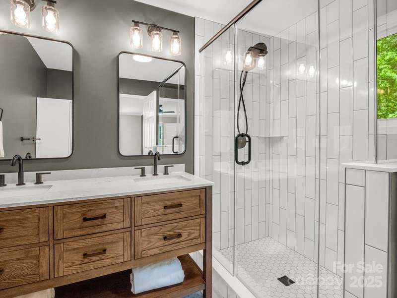 Beautiful renovated home in Black Mountain on 2.52 acres! This home has been completely renovated on the main level, including all new kitchens, baths, floors, soft-close drawers and cabinets, primary suite with dual vanities, and a walk-in closet. New lower deck and completely new water system. Lower level has a tandem garage and a one-bedroom apartment with private deck. The apartment has separate utilities and is an ideal setup for a short-term rental, long-term rental, or for an aging parent, as no stairs are required to access the apartment. Lots of parking, including a carport on the main level for unloading groceries, and more spaces beyond the carport and in front on the garage. French doors lead onto the main level deck make this a perfect entertaining layout! Home is located across the street from the Black Mountain town limits (no town taxes)! Creekside Sports Club (pickleball/tennis) and the Black Mountain Y are 0.4 miles away! Two new furnaces in 2022. 3-BR septic permit.