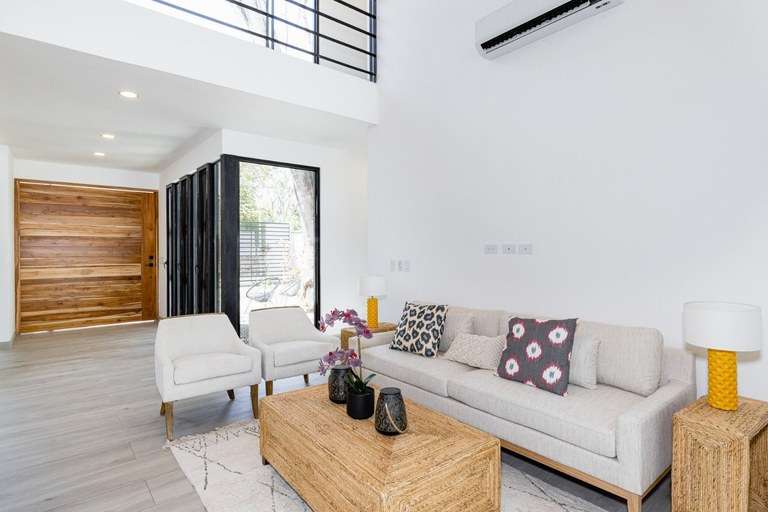 Constructed with solid concrete, stucco finishes, glass accents, and a durable metal roof, Casa AmberJack is built to last. Its tropical modern architecture emphasizes clean lines, natural light, and a connection to nature, with the backyard bordering a protected green corridor that ensures lasting privacy and forest views.
