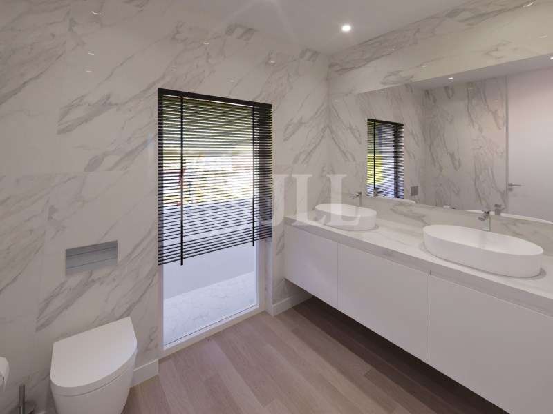 Moradia T4 com 504 m2 de área bruta de construção e garagem, no condomínio Ocean Prime Village, com piscina, em São Pedro do Estoril, Cascais. Distribuída ao longo de três pisos, a moradia apresenta uma arquitectura pensada nos mínimos detalhes, onde a elegância se encontra em harmonia com a praticidade do quotidiano familiar. O piso -1 proporciona um espaço amplo e versátil para garagem, com capacidade para automóveis e motociclos, complementado por uma casa de banho de apoio. No piso térreo encontra-se a zona social da casa, composta por sala de estar que se articula com a cozinha. Este nível integra ainda um quarto com roupeiros embutidos e uma casa de banho. O primeiro piso reserva a zona mais privativa da moradia, destacando-se o quarto principal em suíte. Cada moradia do Ocean Prime Village reflecte a excelência em todos os detalhes, com acabamentos de qualidade criteriosamente seleccionados para garantir que cada casa se apresente como um verdadeiro refúgio de elegância à beira-mar. Situado numa das zonas mais prestigiadas da linha de Cascais, o Ocean Prime Village está a menos de cinco minutos a pé da praia, onde o som do mar se funde com o ritmo tranquilo característico desta região. A estação ferroviária nas imediações garante ligações rápidas a Lisboa e a outras localidades da linha. Esta zona distingue-se pela sua atmosfera serena e sofisticada, proporcionando o cenário perfeito para quem procura qualidade de vida excepcional num ambiente costeiro de prestígio. Categoria Energética: A+ #ref:93955