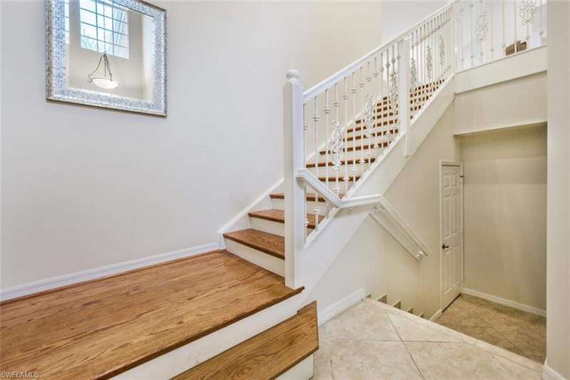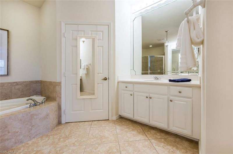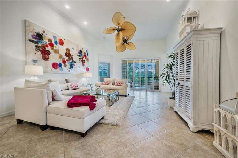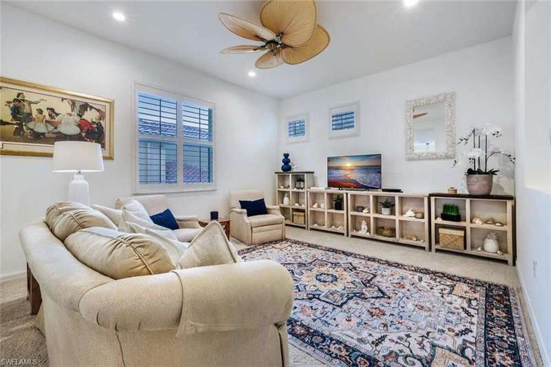 Step into this beautifully furnished 3-bedroom, 2-bath carriage home with a den and attached one-car garage. This highly sought-after end unit boasts a bright, open floor plan with a modern kitchen featuring white cabinetry, granite countertops, and a full suite of stainless steel appliances. Plantation shutters add elegance throughout. Enjoy your mornings on the spacious screened lanai overlooking peaceful views of the 12th tee. Life at Vasari Golf & Country Club means more than a home-it's a lifestyle. Stay active at the fitness center, play golf, tennis or bocce ball, or relax with fine dining and casual outdoor meals. Ideally located near pristine beaches, world-class shopping, RSW Airport, entertainment, and sports facilities, this residence offers the very best of Florida living.