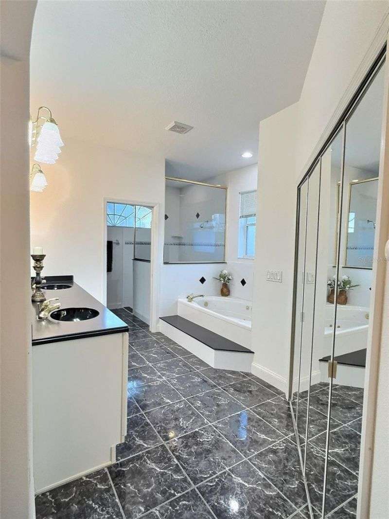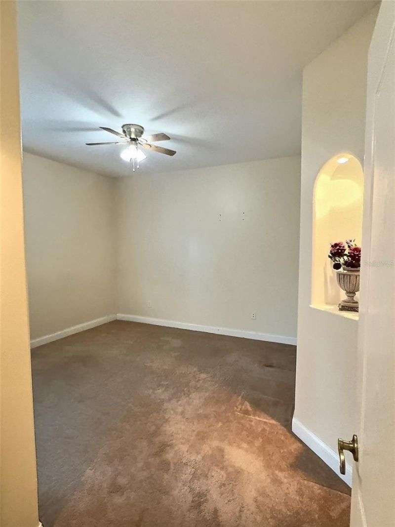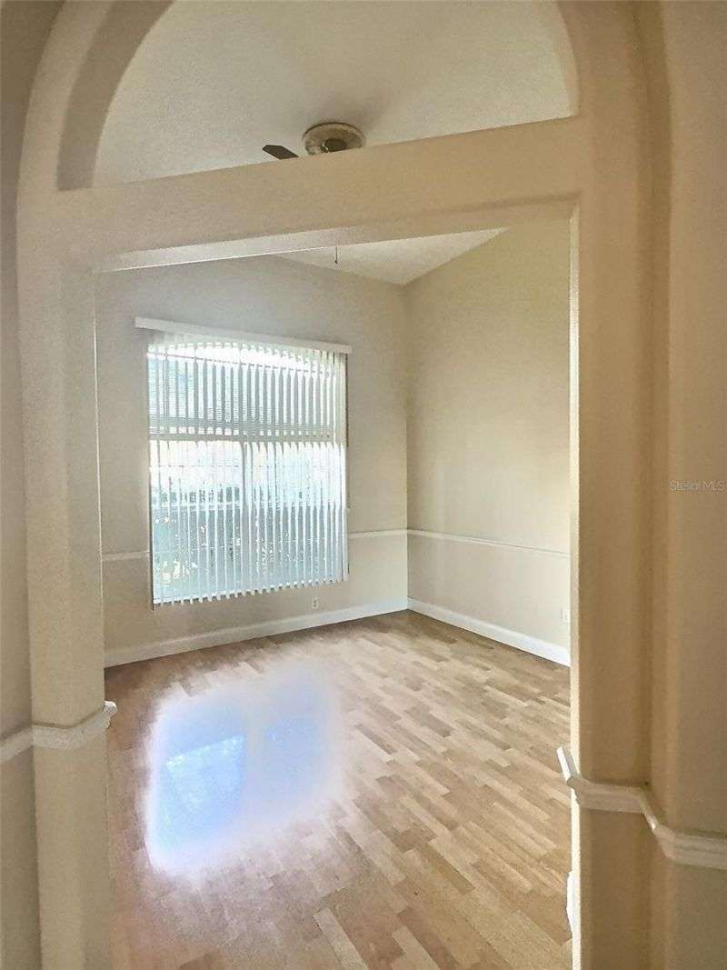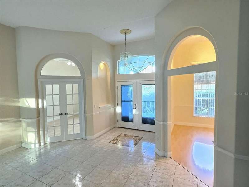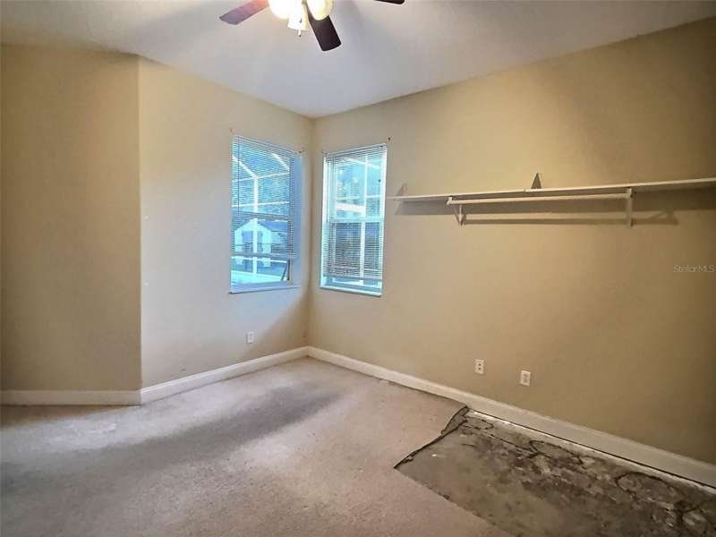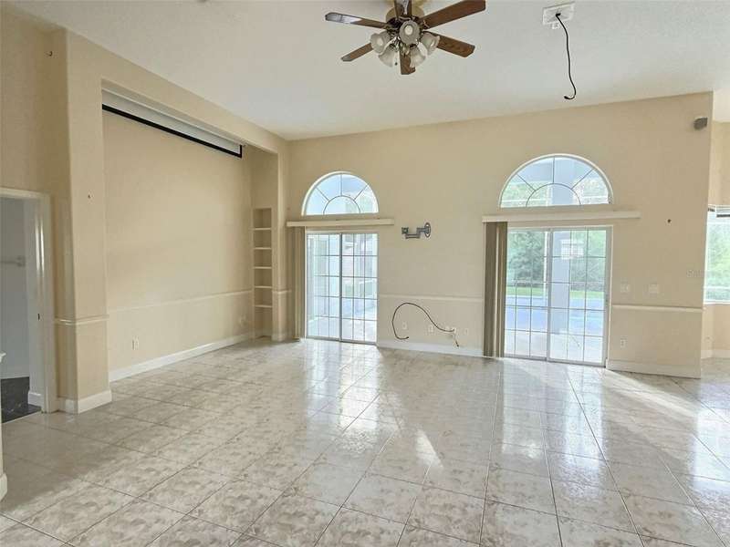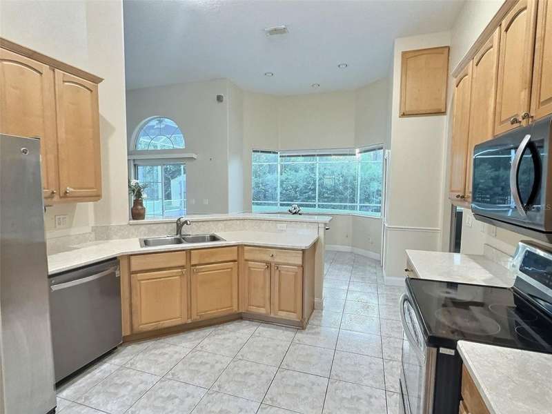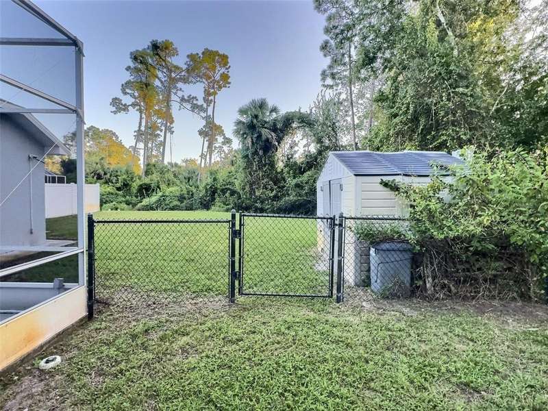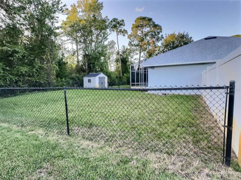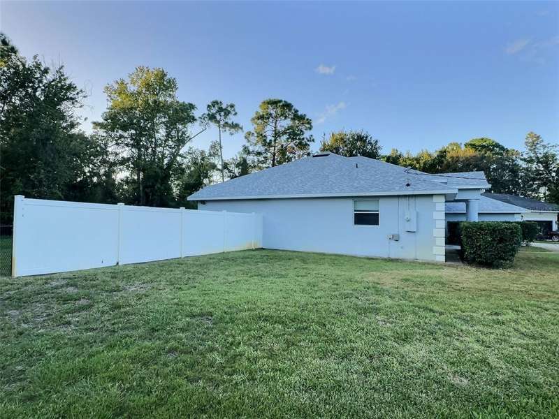 Built in 2003, this 2,256 sq ft concrete block home is nestled on a nearly half-acre cul-de-sac lot that backs up to 19 acres of vacant, wooded municipal land-offering rare privacy and a serene natural backdrop. The spacious yard provides plenty of room for outdoor living and recreation.The exterior boasts a screened patio with both open-air and covered sections, a utility shed, and a well-fed irrigation system. Inside, you'll find high ceilings ranging from 9 to 10.5 feet, a double front entry with a screen door, and sliding glass doors that open to the patio from both the great room and primary bedroom.The kitchen features 42-inch upper cabinets, a bright dining nook with a seamless bay window, and a peninsula with a raised breakfast bar. The interior laundry room includes a hookup for a utility sink.The great room is filled with natural light from large arched windows and includes chair rail trim and built-in storage nooks surrounding a spacious entertainment area. Two adjacent flex rooms offer versatility-ideal for a home office, playroom, formal dining room, or even an additional bedroom.The primary suite impresses with a vaulted ceiling, walk-in closet with built-in safe, dual vanity, linen closet, soaking tub, and a walk-in shower with dual shower heads. A split floor plan separates two additional bedrooms and a full bath for added privacy.With its well-designed layout, desirable architectural features, and a prime location on a unique and private lot, this home is a rare find.