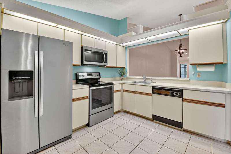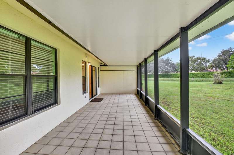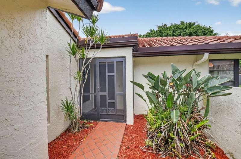 BEST VALUE IN PALM CHASE! Discover this spacious villa offering two bedrooms plus a versatile bonus room, a 290 sq. ft. sunroom, and a one-car garage. Perfectly positioned on a quiet cul-de-sac, this home enjoys exceptional privacy within Palm Chase, a gated HOPA community. A charming private courtyard welcomes guests, while inside, a skylight brightens the kitchen with natural light. Vaulted ceilings in the living and dining areas create an airy, open feel--making the villa live like a single-family home. The sought-after split bedroom floor plan, interior laundry room, and oversized sunroom overlooking peaceful green space add to the appeal. The garage conveniently opens directly to the kitchen, and the driveway accommodates two cars with additional guest parking nearby. At Palm Chase,