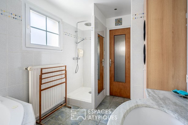 On the first level, on the one hand there are two bedrooms sharing a bathroom and a toilet and on the other hand a walkway leading to the master suite with a bathroom equipped with a spa bath, a shower, dressing room and toilet, offering comfort and privacy.