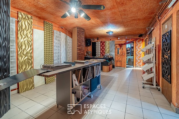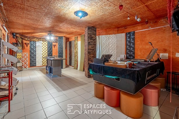 A large living room of approximately 47m2 and benefiting from large openings to the outside providing constant light, extends under 8 meters of ceiling height creating a feeling of freedom.
