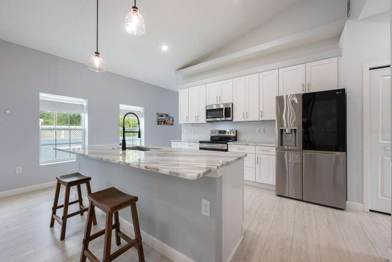 Seller may consider buyer concessions if made in an offer** This house comes with a REDUCED RATE through the seller's preferred lender. This is a lender-paid rate buydown that reduces the buyer's interest rate and monthly payment.** Experience modern comfort and Southern charm in this IMMACULATELY MAINTAINED 3-bedroom, 2-bathroom home with 1,889 SQUARE FEET of single-story living in the heart of Lake Helen. Just FOUR YEARS YOUNG, this beautifully designed home features vaulted ceilings, an ENERGY-EFFICIENT metal roof that eliminates worries about shingle loss during Florida storms, and an abundance of DOUBLE-PANE WINDOWS that fill the interior with natural light. You'll love the LARGE COVERED FRONT PORCH, complete with a swing—perfect for relaxing and enjoying the peaceful, friendly neighborhood. Inside, the OPEN LAYOUT is filled with thoughtful upgrades and modern fixtures, including a SMART THERMOSTAT, SMART IRRIGATION SYSTEM, and a mud room for everyday convenience. The kitchen is a showstopper, offering a SPACIOUS CENTER ISLAND with counter-height seating, sleek cabinetry, quartz countertops and a built-in WINE REFRIGERATOR—ideal for entertaining. The primary suite offers a private retreat with an EN SUITE BATHROOM containing a private water closet, dual sinks, walk-in shower and plenty of space to unwind, while two additional bedrooms provide comfort and flexibility. A BONUS ROOM, ideal for a home office or creative space, opens through FRENCH DOORS directly onto the back patio, enhancing your indoor-outdoor lifestyle. The fully fenced backyard features vinyl fencing, a handy storage shed, and plenty of room to enjoy outdoor living. The EXTRA-LONG DRIVEWAY offers ample parking for your RV, golf cart, or boat—and with NO HOA, you’ll enjoy the freedom to truly make this home your own. Located just blocks from local coffee shops and ice cream stores, you’ll love the SMALL-TOWN CHARM of Lake Helen, where community events like parades, the Strawberry Festival, and seasonal celebrations bring neighbors together. Enjoy LAKE ACCESS for fishing and kayaking, and explore local favorites like the Lake Helen Equestrian Center and the Butler Express Train ride. This home isn’t just a place to live—it’s a lifestyle. Check out this property's Instagram page at https://www.instagram.com/lifeinthelakehelenhouse/ and see what makes this LAKE HELEN GEM so special!