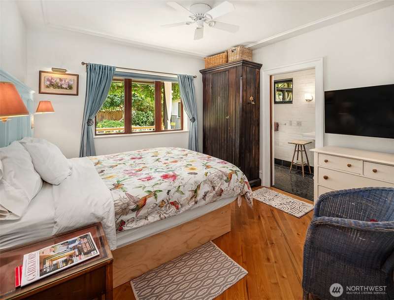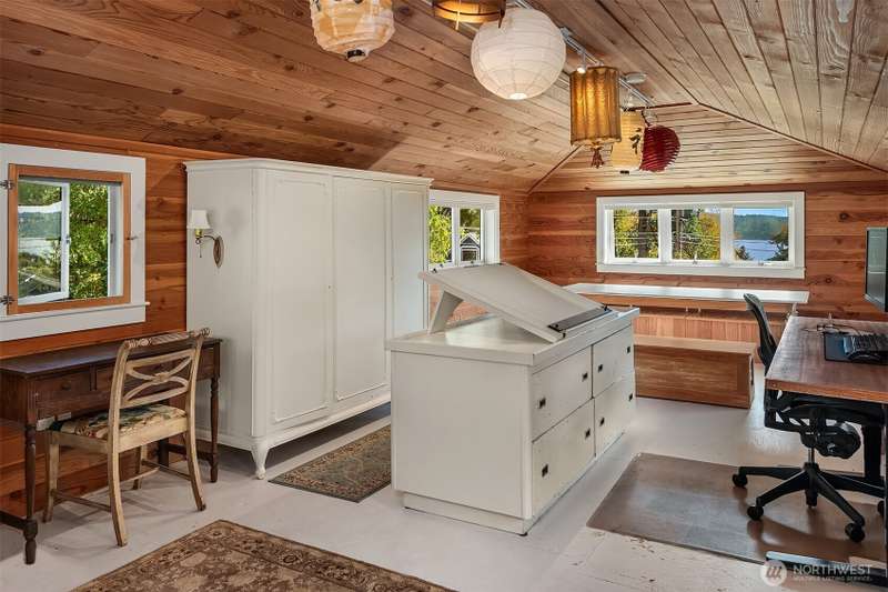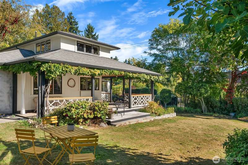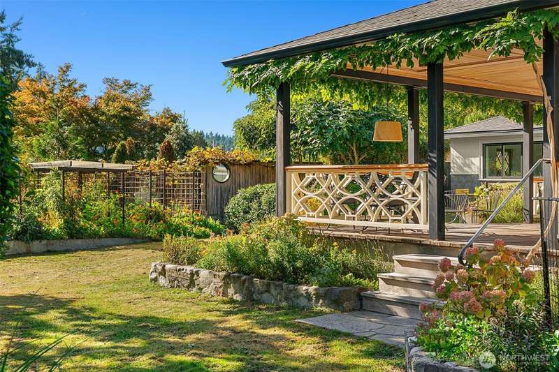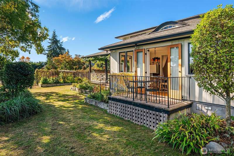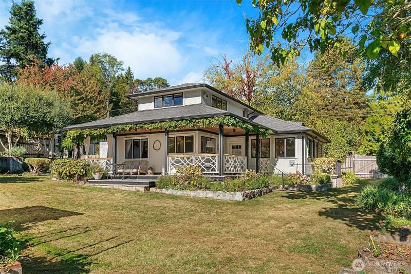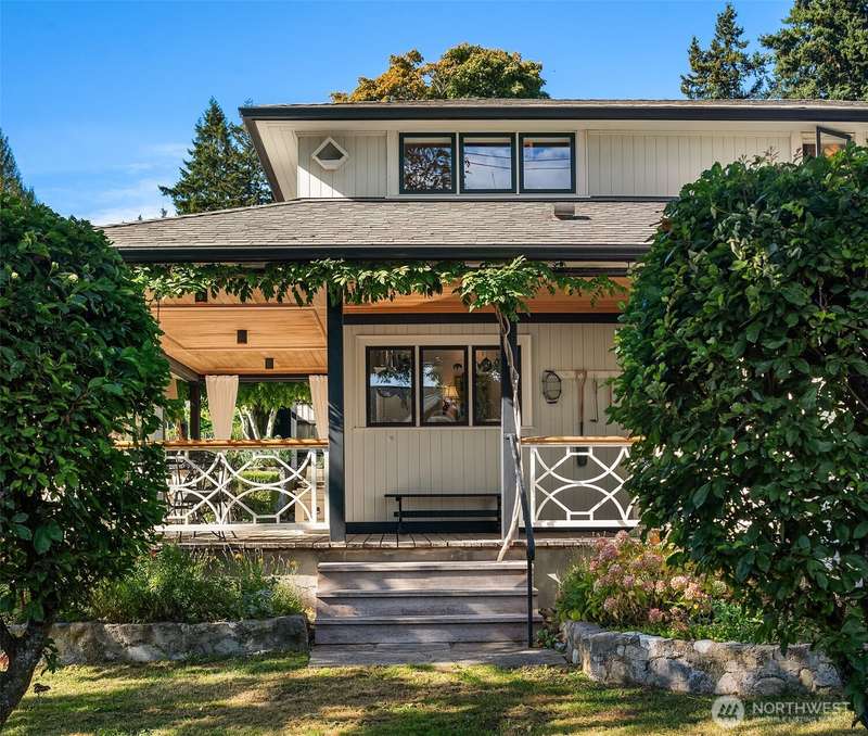 Meticulously updated, this Romantic Bungalow Cottage built in 1915 is perched just above Vashon’s favorite, KVI Beach. Every detail has been thoughtfully designed, from the Vashon-grown and milled Madrona floors to the spacious bathrooms complete with artisan tiles & radiant heat. The airy and light-filled kitchen flows effortlessly through large pass-through windows & onto the spacious covered porch, seamlessly connecting kitchen to outdoor living. The great room boasts French doors opening to a balcony to enjoy early morning. Stepping back inside, curl up by the gas fireplace & keep cozy on cooler evenings. Nestled above the dreamy office is a wonderful finished 1/2-story with picturesque views of Tramp Harbor and its surrounding area.