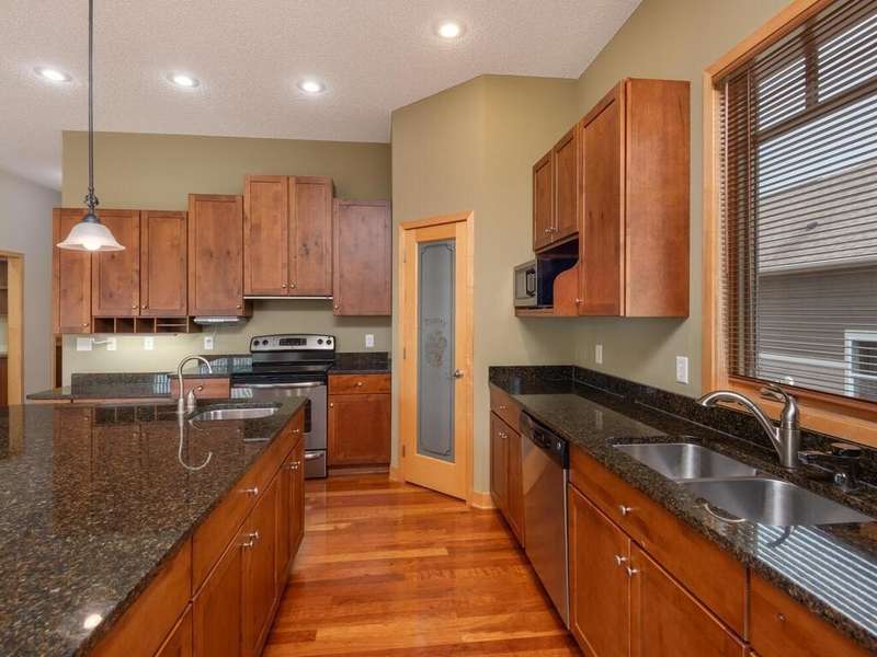 Great one level end unit townhouse with 2 bedrooms, 2 bathrooms, and office, laundry room, four season porch and a 3.5 garage. All on the main level. An open floorplan with a 9x5 kitchen island. Great access to Crystal Lake Park, it's hiking trails and seasonal water views. Close to restaurants, grocery store, post office and banks. Full walkout basement is ready for your creative design.