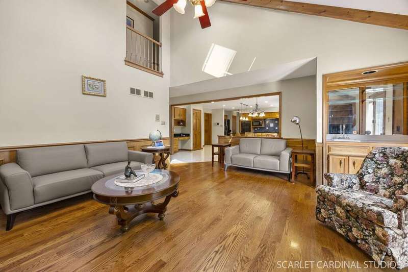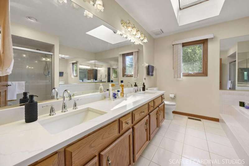 Welcome to 1712 Chepstow Court - a beautifully maintained, original owner home tucked away on a peaceful cul-de-sac in the highly desirable West Winds community. Featuring a classic brick front and situated on a premium southern-facing lot, this home is filled with natural light and offers the perfect blend of space, function, and thoughtful updates throughout. Upon entering, new owners can enjoy a large two-story entry offering a living room that can easily be used as a home office and formal dining room perfectly nestled on either side. Step through the entry into the heart of this home - a beautifully appointed kitchen offering ample cabinet and counter space; a center island; pantry closet; a built-in planning station; a full complement of appliances (top oven as-is); and an adjacent dine-in area perfect for breakfast and other quick meals. The kitchen flows seamlessly into an expansive family room with every attention to detail, including vaulted ceilings with skylights; a wet bar; a brick, gas-start fireplace with ceramic logs and built-in shelving; a second staircase leading up to the second floor with additional storage underneath; and direct access to the backyard deck! The main floor is complete with a full bathroom and a private bedroom - perfect for a guest suite, second office, or fifth bedroom. A functional laundry room with utility sink sits off the oversized 3-car garage for added convenience on the main floor. Upstairs, four generously-sized bedrooms with ample closet space - including a large primary suite with a walk-in closet and private bath - await! A shared hall bathroom with double-sink vanity, tub/shower combo, and nearby linen closet completes this level. A finished basement with a half-bath adds even more living space, featuring a custom-built bar with sink, refrigerator, cabinetry, and shelving - ideal for entertaining year-round! A cemented crawl space provides clean and accessible storage. Additional features of this home include a central vacuum system; functional intercom system; sprinkler system with timer; brand new sump pump with backup (2024); and more! All of this with every Naperville amenity at your doorstep - May Watts Elementary School and Park; the Metra and highway; the library; and all the shopping, dining, and entertainment Downtown Naperville has to offer! This is a rare opportunity to own a lovingly cared-for home in one of Naperville's most established and convenient communities - you won't want to miss this!