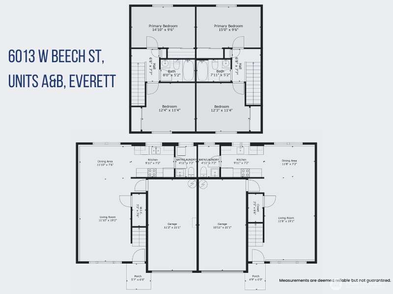 Looking for a house hack or investment property? We found the one! Located minutes from Boeing, Amazon, and other large employers, each 2 bed, 1.5 bath unit includes a 1-car garage and tasteful updates throughout, including Plygem vinyl windows (2021). Unit A features updated cabinetry and flooring, and a new tub/ shower upstairs. Unit B was completely updated in July 2025 with new flooring, counters, cabinetry, trim, paint, appliances, light fixtures, plus a fenced yard. Live in the recently updated side and continue to rent the other! Unit A is currently rented (please do not disturb tenant),check out the video and 3D tour! Pre-inspected for your peace of mind and savings! One year home warranty offered!